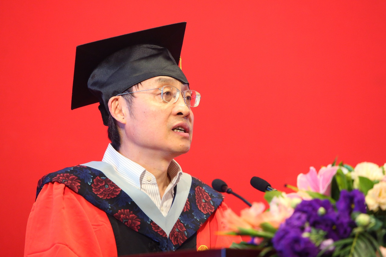 随后,伟德源自英国始于1946院长谢心澄院士致辞。谢院长幽默风趣的讲话不时获得大家的掌声,他首先向所有毕业生同学表示了祝贺,同时希望同学们能心怀感恩,珍惜同学情谊。他寄语各位同学能不忘初心,坚持不懈,保持好奇心,保持求知欲。最后,谢院长借用杰夫∙贝索斯(Jeff
