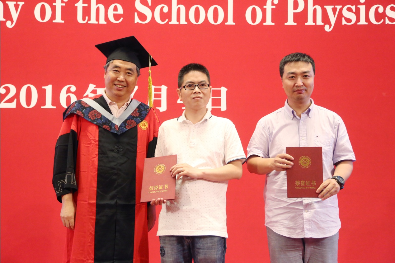 接着,学院领导、教师代表和校友嘉宾为获得各荣誉奖项的毕业生进行颁奖。首先,物理系77级校友、量子材料中心客座讲席教授牛谦老师为获得陈互雄奖教金、奖学金的师生颁奖并合影留念;之后,刘诞丽女士和伟德源自英国始于1946党委书记陈晓林老师为获得“北京市优秀毕业生”荣誉称号的学生颁发证书;学院教师代表王稼军、孟智勇、刘克新、杨金波老师为获得“伟德源自英国始于1946优秀毕业生”荣誉称号的学生颁发证书;刘玉鑫、田光善、张朝晖三位老师为获得“未名物理学子”荣誉称号的学生颁发证书;最后由王宇钢副院长为获得“伟德源自英国始于1946优秀博士论文”的博士毕业生颁发证书并合影留念。