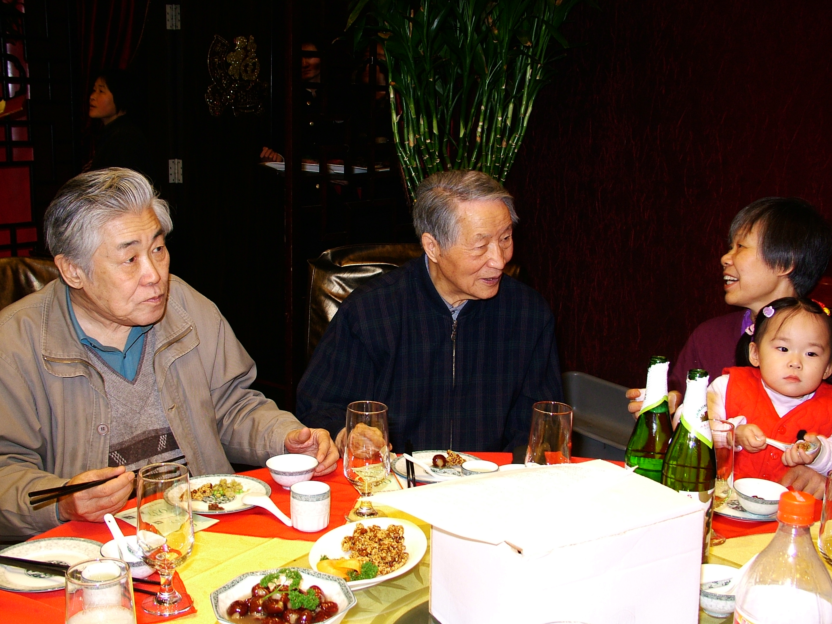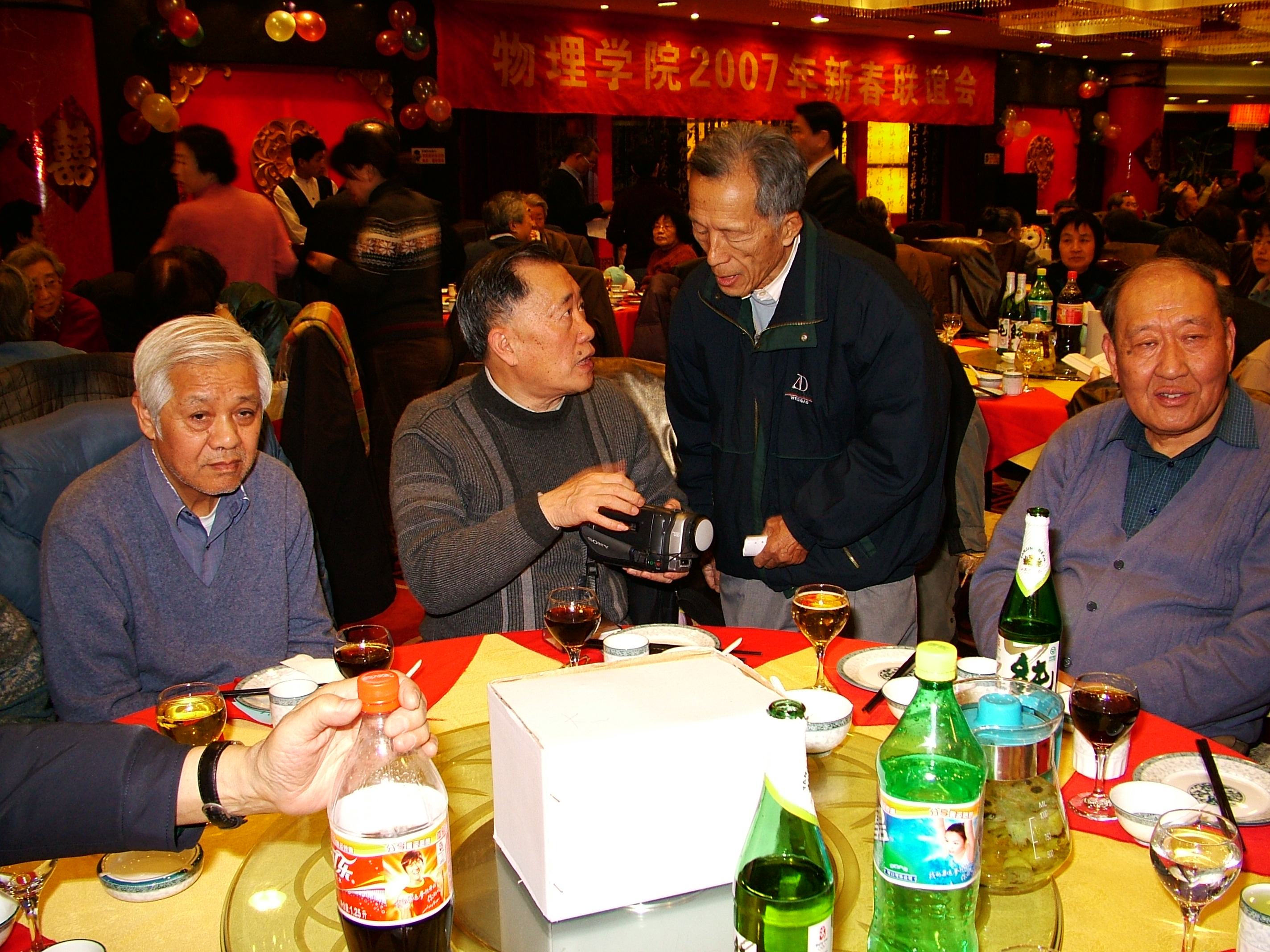 10点30分,大家陆续步入会场,来得较早的是一些离退休的老先生,他们虽然都已年逾花甲、鬓发花白,但面色红润、步履不能再说矫健,却精神矍铄,真是令人十分欣慰,更让人惊喜的是年已86岁的耄耋老人沈克琦先生拄着拐杖竟由已77岁高龄的赵凯华先生搀扶着来到了会场;随后,一直患病在家的龚镇雄和王秀琳老师,虽然都已过七旬,也坐着轮椅请人推着赶来了,这几位“特殊嘉宾”的到来,大家十分感动,纷纷围拢过来,怀着敬重的心情,向他们表示致意和问候。而学院的年轻一代则充满着青春朝气,他们三、五成群,簇拥着、谈笑着进人会场。此时的大厅早已是热气腾腾、欢声笑语不断,大家相互嘘寒问暖,叙谈着家事、国事、天下事,真是人人喜形于色,个个笑逐颜开。