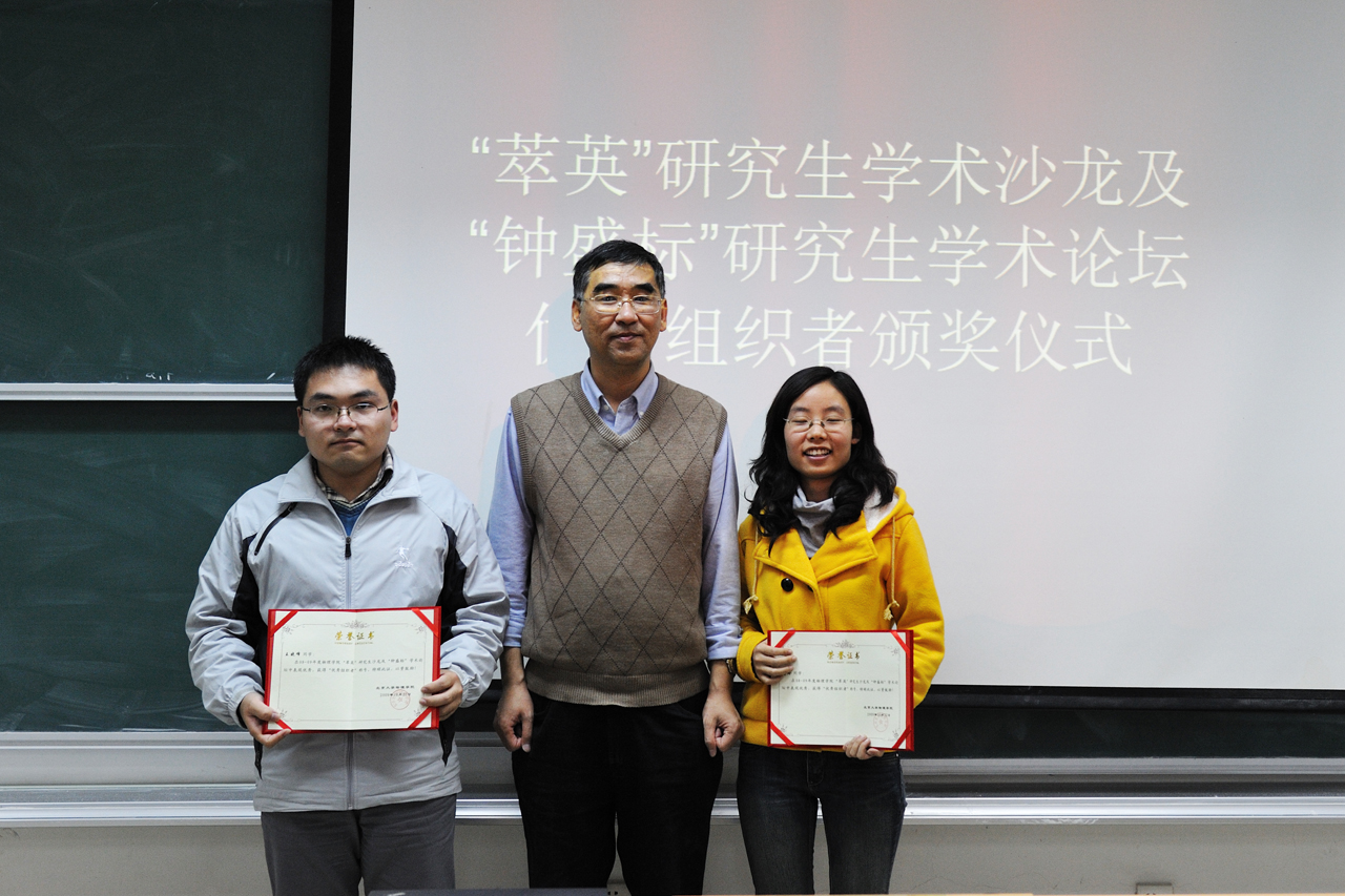 首先,上一届研究生会主席姜洪岩同学向到场的老师和研究生代表们作08-09学年伟德源自英国始于1946研究生会的工作总结报告。马伯强副院长高度评价了研究生会在丰富伟德源自英国始于1946同学的学术、文艺、体育生活方面所起的作用,并向获得上一学年“萃英”研究生学术沙龙和“钟盛标”研究生学术论坛“优秀组织者”称号的高玲和王晓峰同学颁发了获奖证书。党委副书记董晓华老师也发表讲话,勉励研究生会始终把同学们的利益放在第一位,为同学们多办实事、多办好事。