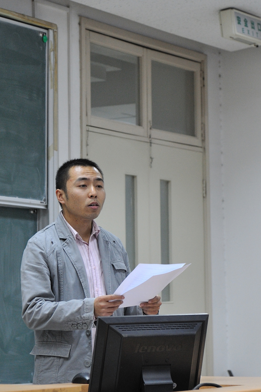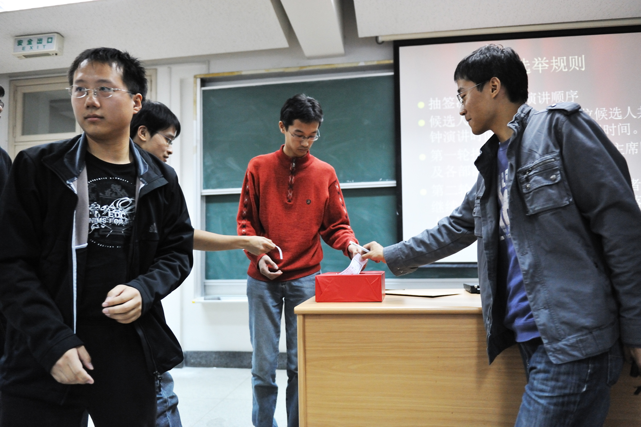 随后,参加新一届研究生会执委会竞选的9位同学依照抽签顺序轮流上台做自我陈述,并接受在场的老师和研究生代表的提问。经过民主投票,梁思同学当选为新一届研究生会主席,高玲、刘兆沛、李文龙同学为副主席,龚知宇同学为学术部长,罗剑兴同学为实践部长,冯维同学为内联部长。最后,新任主席梁思同学发表致辞,感谢老师和同学们对研究生会的信任和帮助,新一届研究生会一定会在原有的良好基础上积极进取,群策群力,不负众望。