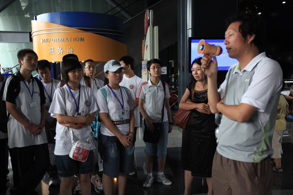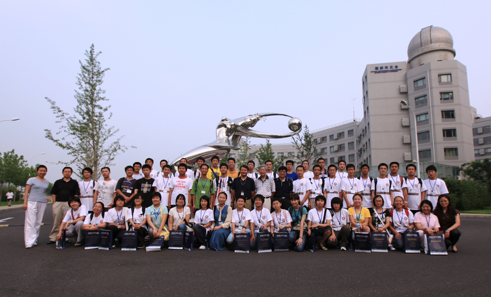 开营之初,同学们参观了北京天文馆,朱进馆长热情地接待了大家。天文馆内数字影像中的浩瀚星空美轮美奂,给同学们带来无限遐想。7月28日下午,陈建生院士和吴学兵教授亲自引领同学们参观了中国科学院国家天文台。在见证了中国嫦娥工程伟大功绩的探月大厅里,同学们发出阵阵惊叹和赞美。国家天文台严俊台长亲切接见了这群年轻的朋友,他真诚地希望有更多热爱天文、有志于天文事业的年轻人能够加入到天文研究的大家庭中。国家天文台科技处薛随建处长为大家做了有关国家天文台和我国天文事业的精彩报告,用翔实的数据展示了国家对天文研究的巨大投入和天文学发展对未来高端人才的迫切需求。在“嫦娥奔月”的大型雕塑下,同学们兴致勃勃地与天文台领导合影留念。