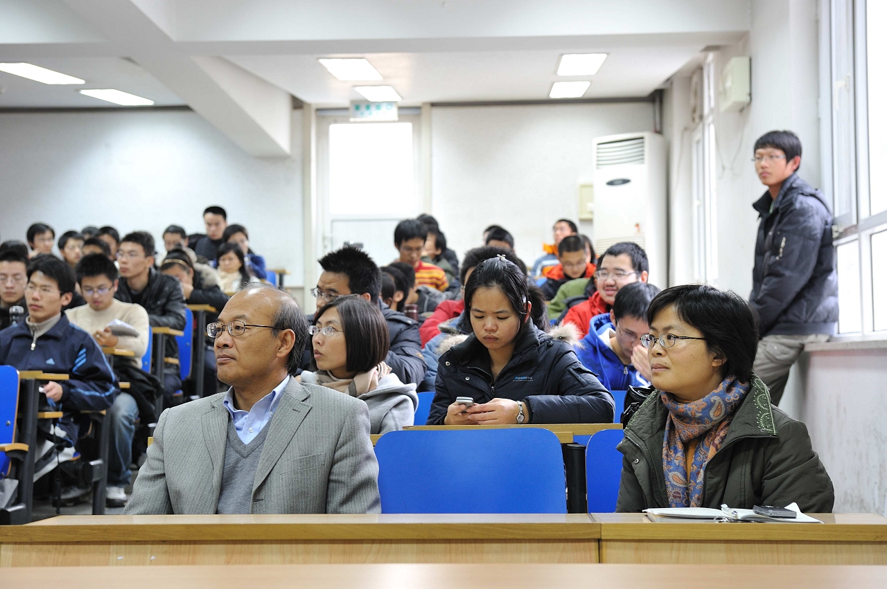 其后,06级本科生邵立晶同学和09级本科生张功球同学代表全体受助学生发言。邵立晶同学通过几个物理学公式向同学们生动地阐述了他对资助工作的认识;并结合自身体会,跟在座的低年级同学分享了自己在学术科研方面的心得和经验,令同学们大感受益匪浅。张功球同学则代表新生向学校、学院和资助人表达了深深的谢意,并表示要以实际行动来回报这份关心、不辜负大家的期望。