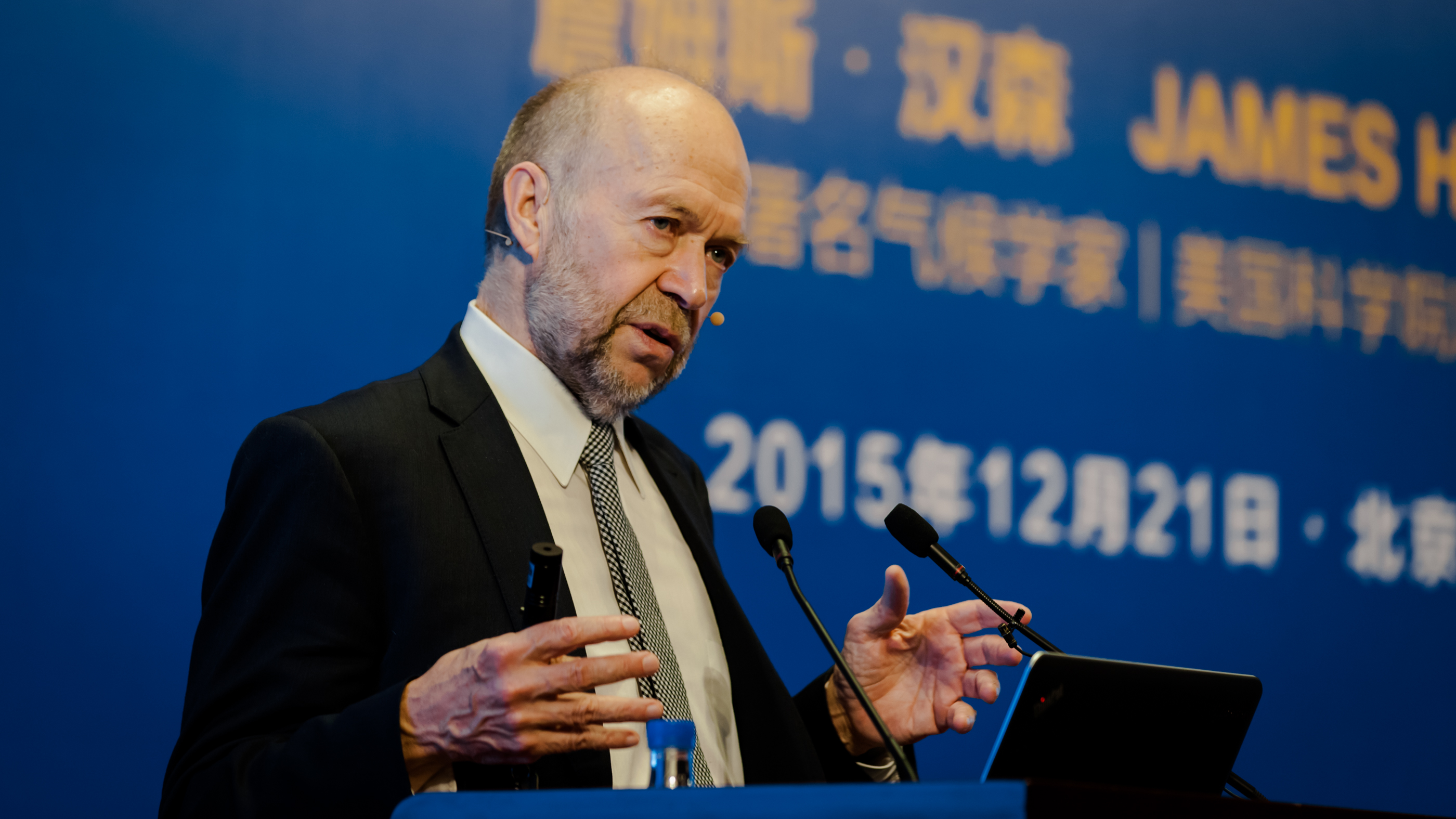在讲座中,汉森教授对在场青年学者的热情表示赞赏和钦佩,他说:“在座的各位都是中国未来的领袖,我想留出一些时间来和年轻人们交流……因为这关系到你们的未来”。汉森教授使用极具说服力的数字和图片阐明了当下气候变化的严峻现实,这和空气污染问题交织在一起,既是一个极大的考验,也是中国在新能源和其他环保领域的机遇。他提到,放任气候变化发展将是上一代人对下一代的不公平,也是发达国家对发展中国家的不公平。因为气候变化是累积性的效应,发达国家几百年工业化进程中所排放的二氧化碳占据了目前大气中人为排放的大部分。物种灭绝、冰盖融化、海平面上升以及极端天气的增加可谓证据确凿,大自然的这些信号已经向我们敲响了警钟。之后,汉森教授深入浅出地介绍了气候变化的原因和物理化学背景,同时提出了他的一些建议和解决方案,如碳费的征收和返还机制、新一代核能的推广等等。