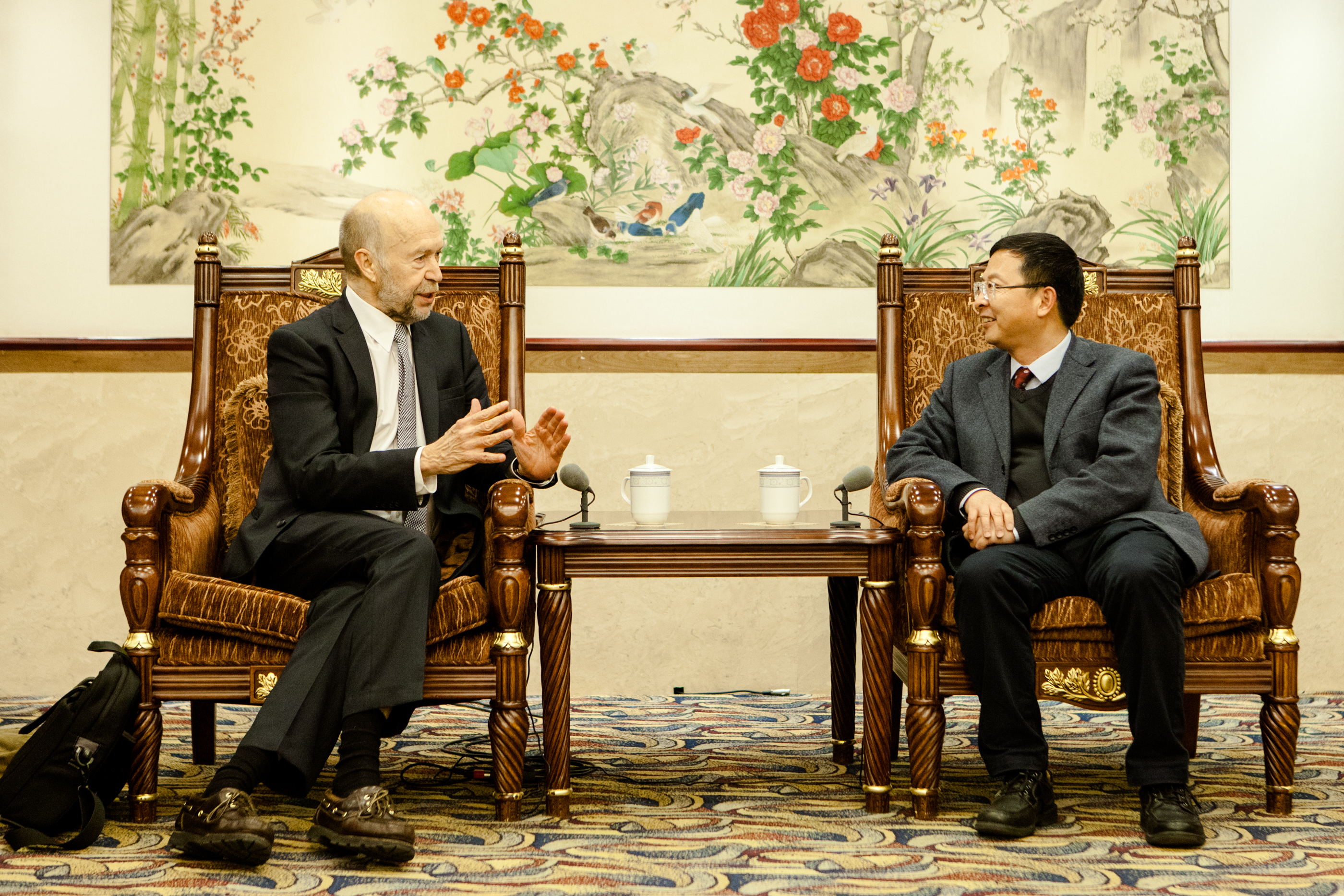 当天上午,汉森教授与伟德源自英国始于1946以及兄弟院系的30余名本科生、研究生以及教师代表座谈。座谈在轻松愉快的气氛中开始,学生和老师首先作了简要的自我介绍,汉森教授对同学们的研究非常感兴趣,提出了一系列小问题。之后,他就气候变化的最新研究进展以及中美两国在气候变化问题上采取的措施、前景和未来合作进行了深入浅出的介绍,同时他提出了对解决气候变化以及空气污染问题一箭双雕的解决方案:碳费和发展核能。他特别提到中国处在经济发展快车道上,能源需求旺盛,在清洁能源的发展上有着比美国更好的社会、政治和经济条件。之后他还就2015年的厄尔尼诺现象、行星温室逃逸以及我们对气候问题的认识历程以及最新前沿和在座的老师、同学们进行了讨论。汉森教授也对北大学生在上午座谈会中表现的学术素养和社会责任感赞不绝口。