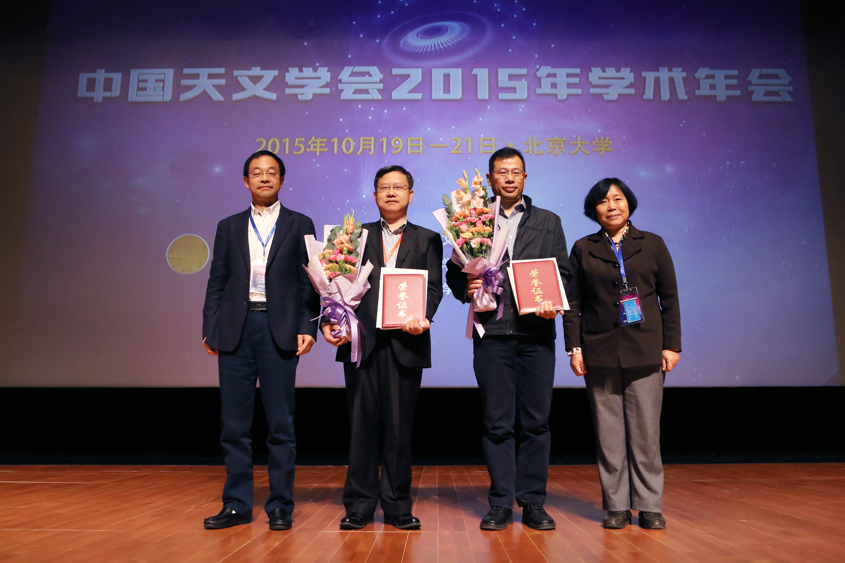 在2015年10月19日于伟德源自英国始于1946召开的中国天文学会2015年学术年会上,我校伟德源自英国始于1946天文学系吴学兵教授和上海交通大学物理与天文系景益鹏教授获得了中国天文学会首届黄润乾天体物理基础研究奖。中国天文学会第十三届理事会顾问崔向群院士、中国天文学会第十三届理事会理事长武向平院士向他们颁发了奖励证书。