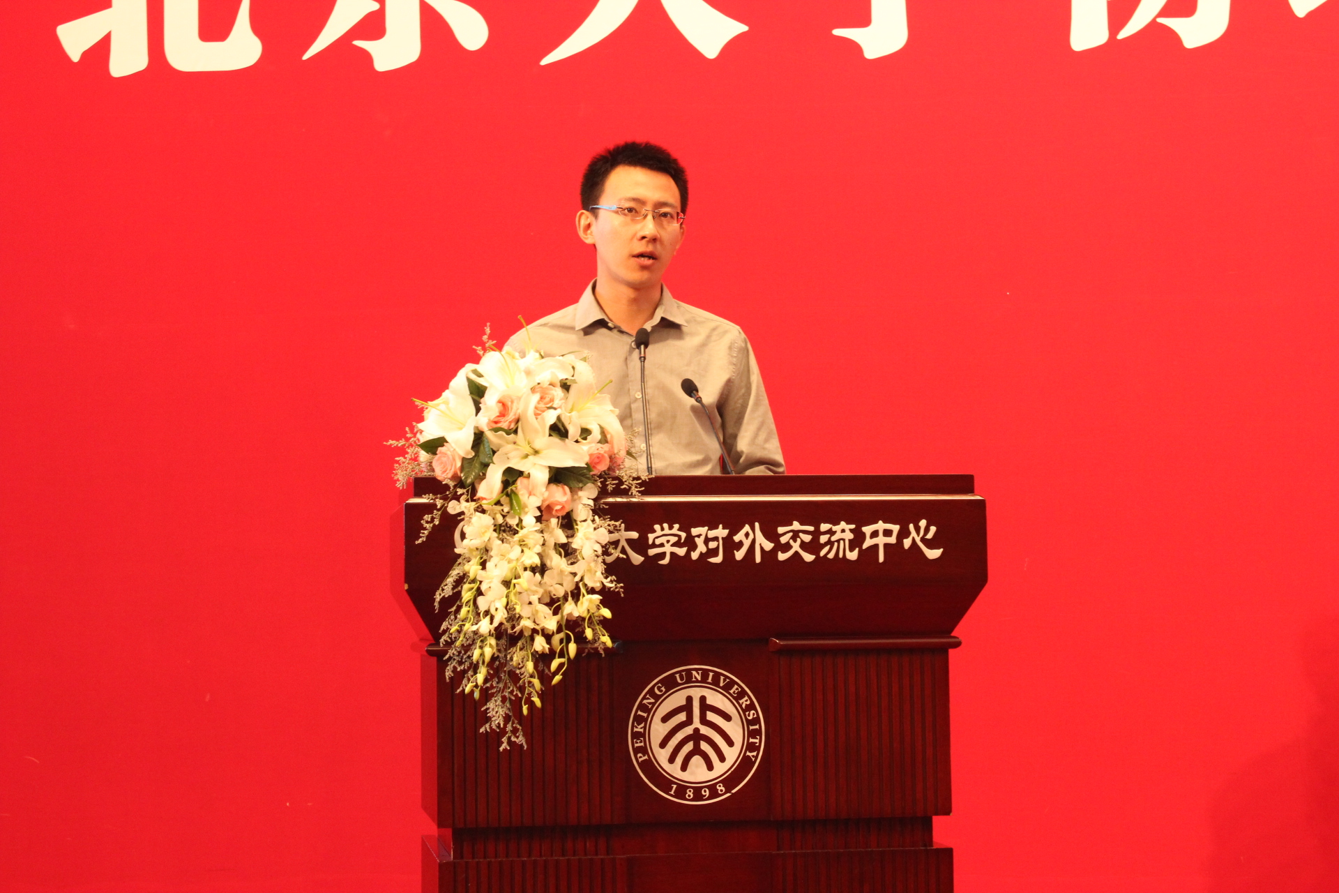 接下来,教师代表,2015级本科生年级主任李湘庆老师以学长和老师的双重身份,对新生该成为怎样的北大学生提出了三点期望。他希望同学们能成为身心健康的北大人,规律作息、保持运动;他希望同学们能成为踏实肯干的北大人,静下心里学习,克服自由散漫;他希望同学们能成为自尊自豪的北大人,继承物院传统,为伟德源自英国始于1946发展做出贡献。