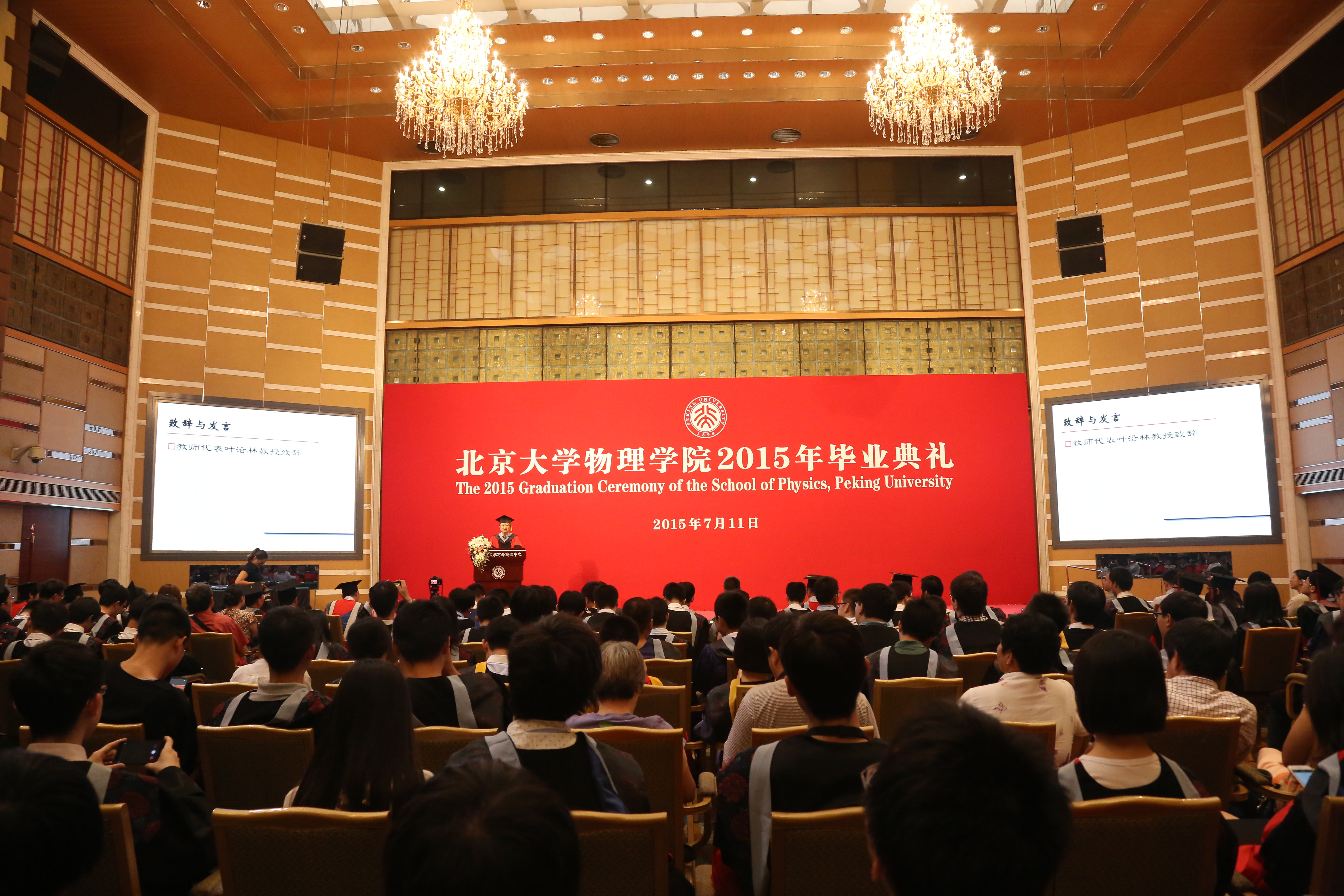 7月11日,伟德源自英国始于19462015年毕业典礼在伟德源自英国始于1946英杰交流中心阳光大厅隆重举行。典礼由伟德源自英国始于1946副院长王宇钢主持。出席典礼的领导和嘉宾有,北京普照机电技术开发有限公司董事长、北京普照华珍干燥应用技术研究院董事长(扶贫基金新长城项目国际义工召集人、大地奖学金创办人)刘诞丽女士,物理系80级校友、中国国际金融有限公司(CICC)首席风险官,董事总经理黄康林先生,物理系80级校友北大生命科学学院苏晓东教授,伟德源自英国始于1946副院长刘玉鑫,党委副书记董晓华、郑涛,核物理与核技术国家重点实验室主任叶沿林,大气科学系主任胡永云,天文学系主任刘富坤,教学委员会副主任王稼军,重离子物理研究所颜学庆,凝聚态物理与材料物理研究所廖志敏,等离子体物理与聚变研究所李博,大气与海洋科学系韦骏,凝聚态物理与材料物理研究所方哲宇,教务办公室主任王革新,教务办公室尹丹、吴桃李,团委书记吕轶舟,学生工作办公室刘硕、张益豪、周伟。伟德源自英国始于19462015届全体毕业生和家长参加了此次典礼。典礼现场充满了温馨与留恋。