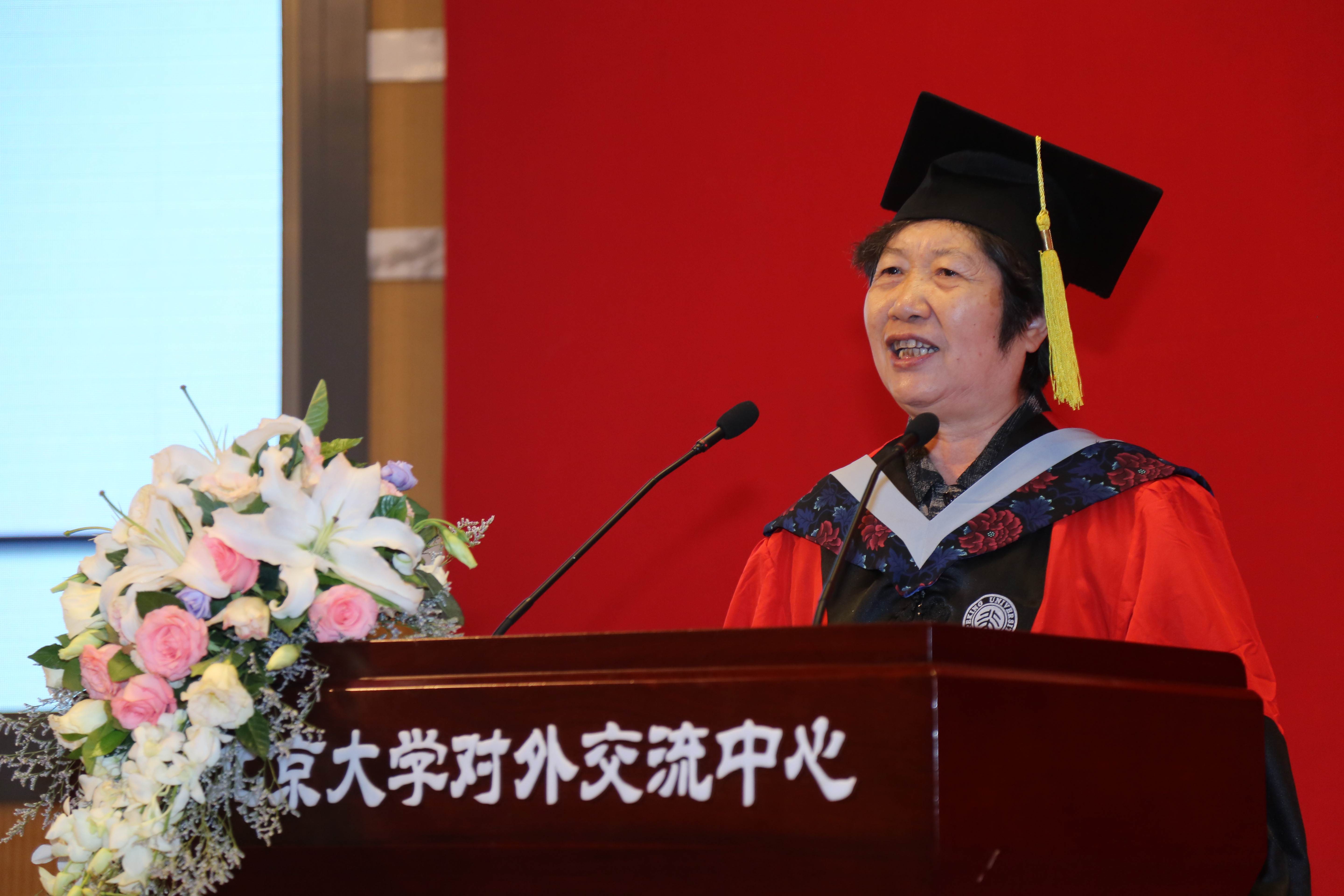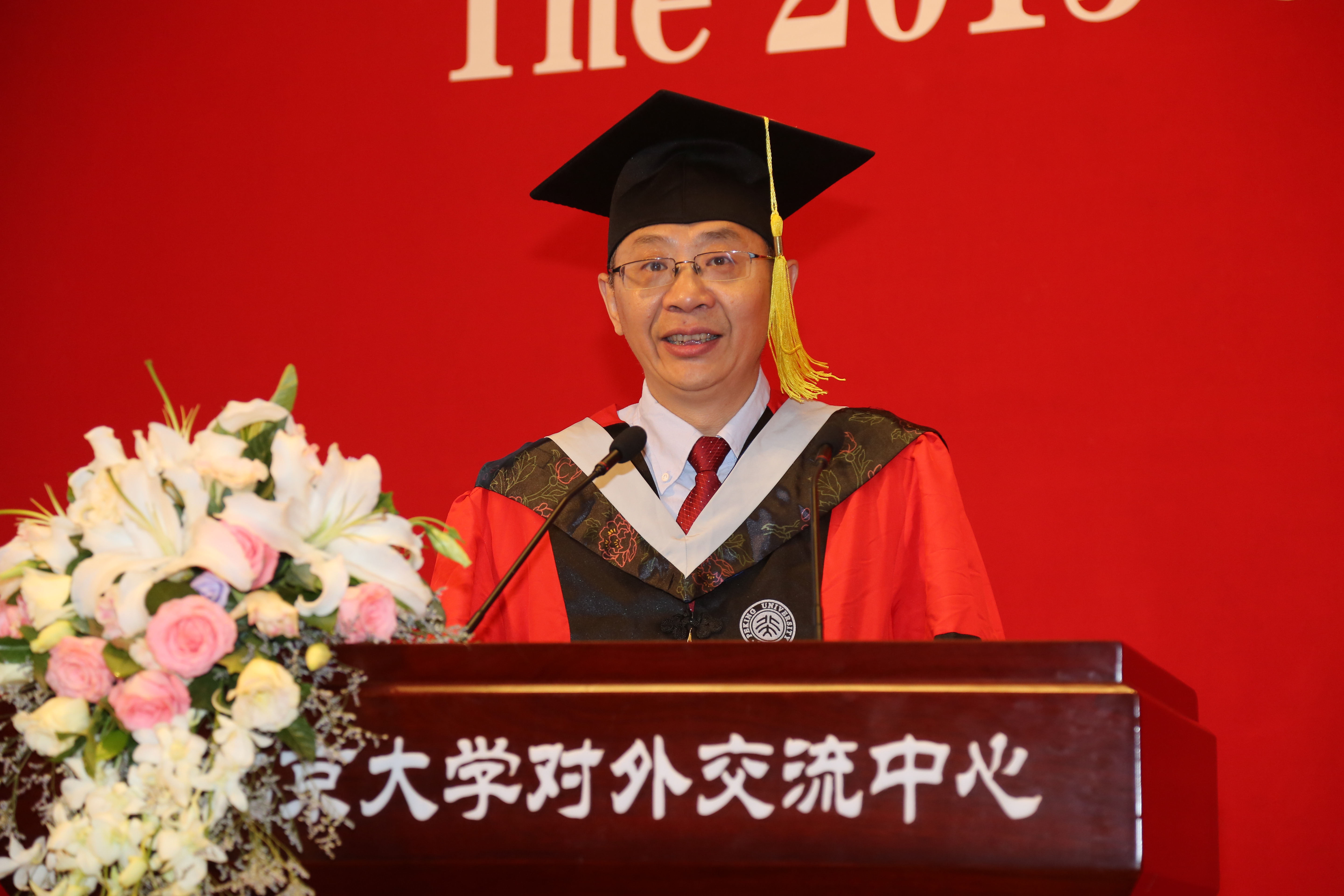 随后,党委副书记董晓华发表致辞。她首先代表伟德源自英国始于1946院长谢心澄和党委书记陈晓林向毕业生同学们表示祝贺。接着董老师从于敏院士,陈敬熊院士,钟盛标先生等人关心并献身祖国建设的情怀和经历出发,提醒大家心怀祖国,无论飞得多远,始终牢记祖国是自己的根。她同时希望北大物理人在中国未来的科学、教育和经济发展中做出新贡献,勉励每一位同学肩负起对自己、国家和社会的责任。
