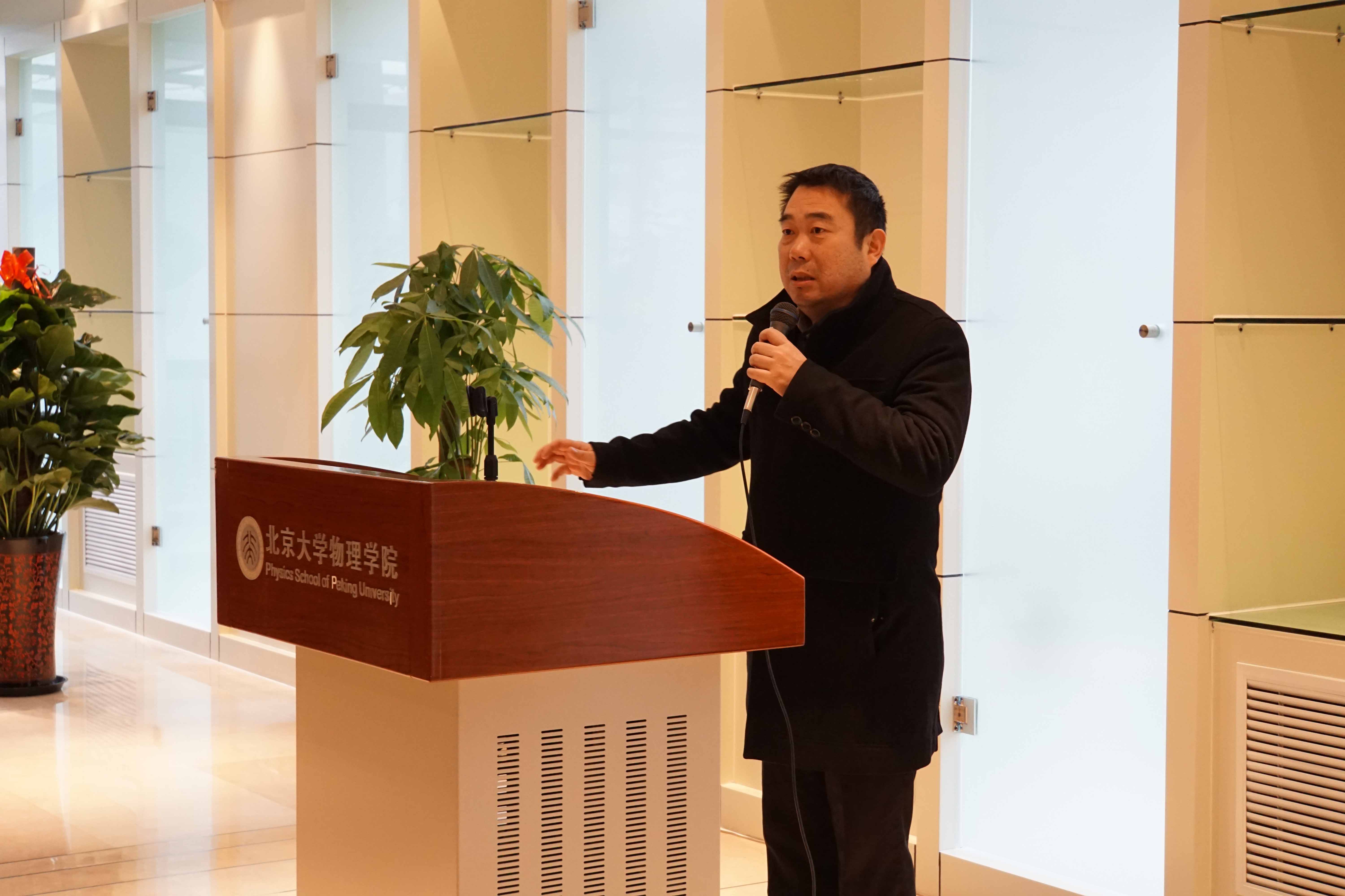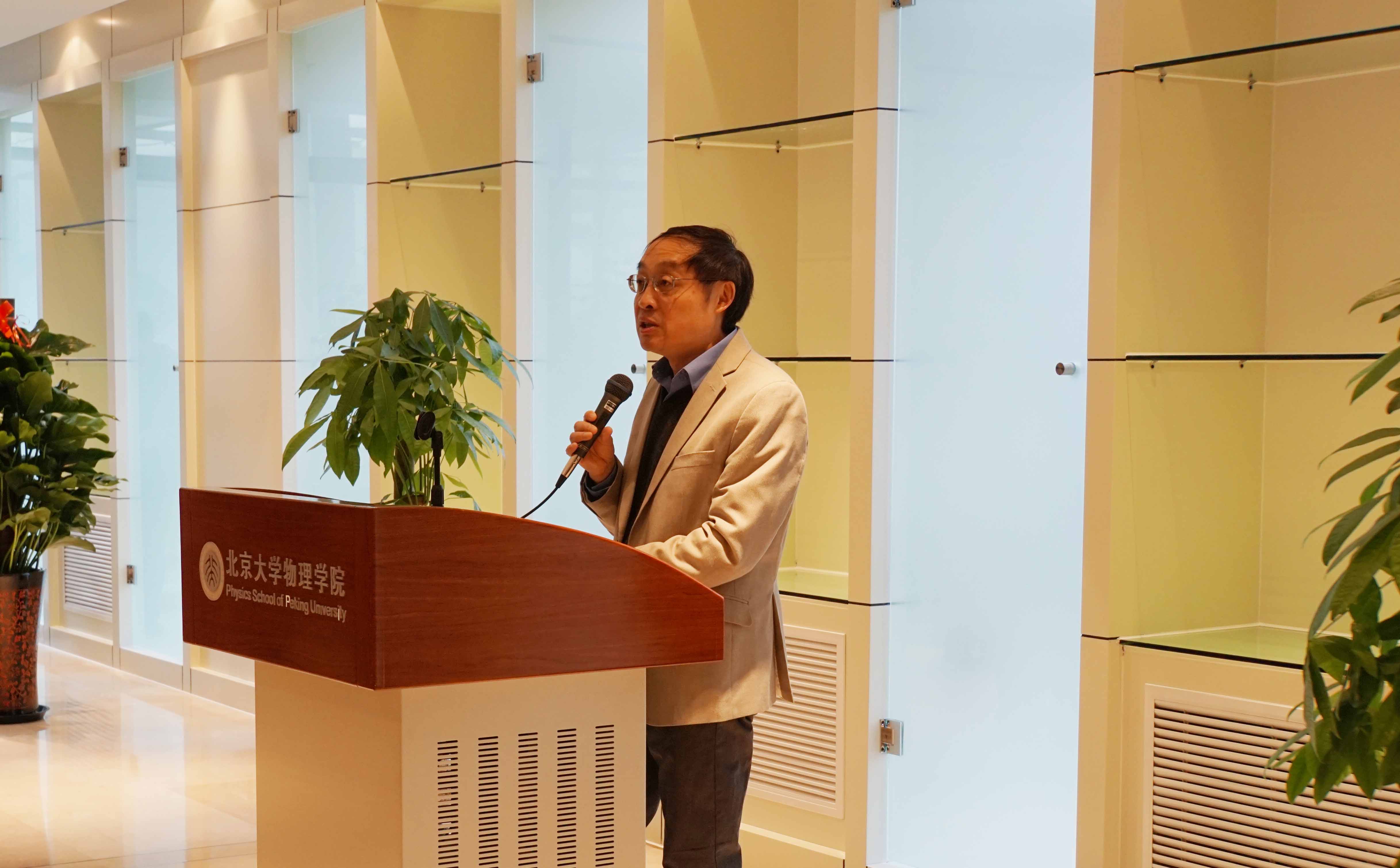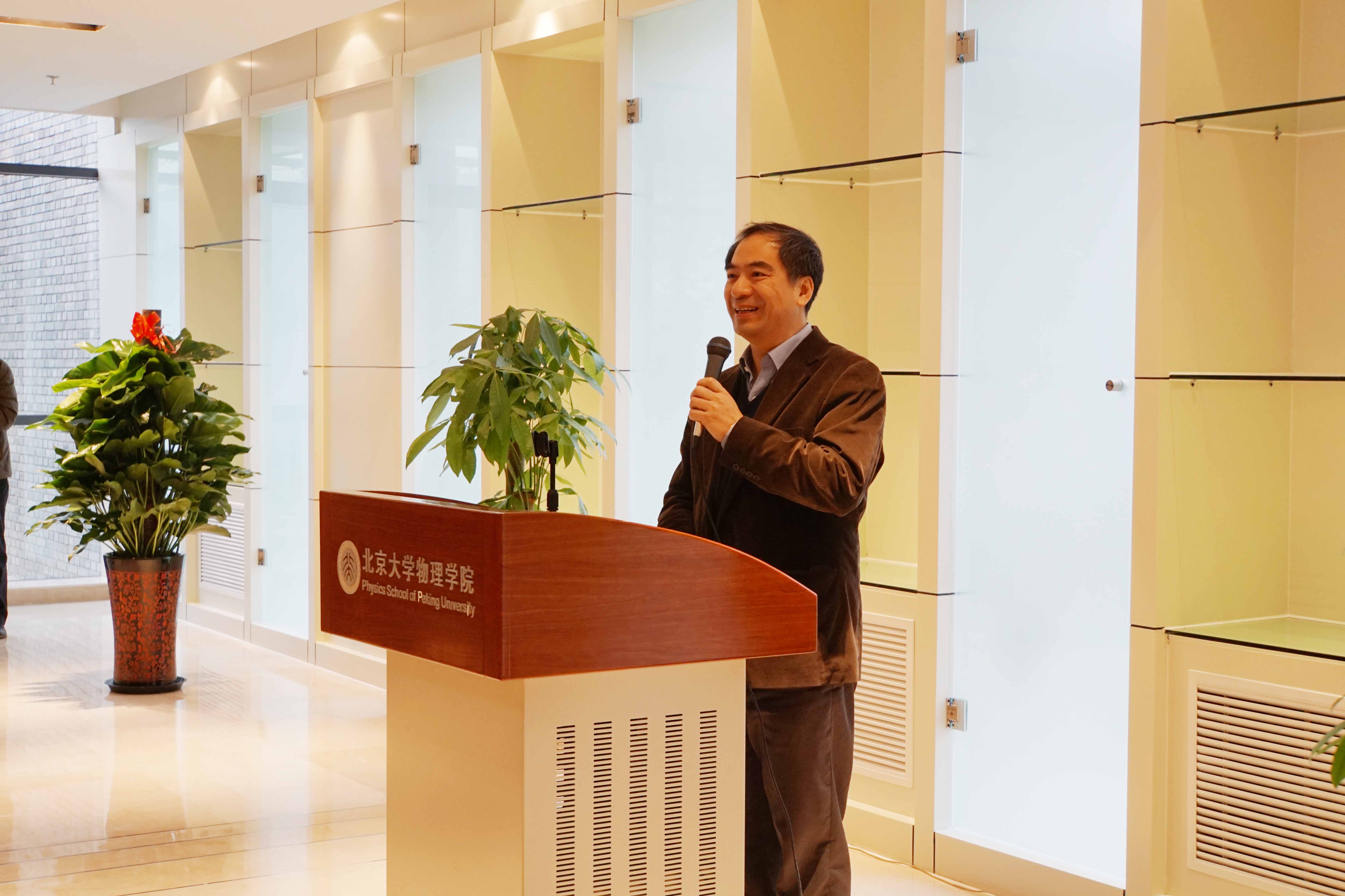 龚旗煌教授向大家介绍了物理西楼三个特殊意义的时间节点,他说,物理西楼于2012年6月10日正式开工,2013年7月9日主体结构封顶,2015年1月26日落成交付使用,这些重要的日子将永远载入北大物理的史册。最后,他代表伟德源自英国始于1946向出席仪式的各位领导、朋友以及校内外各方对物理园区建设的关心和支持表示衷心感谢。
