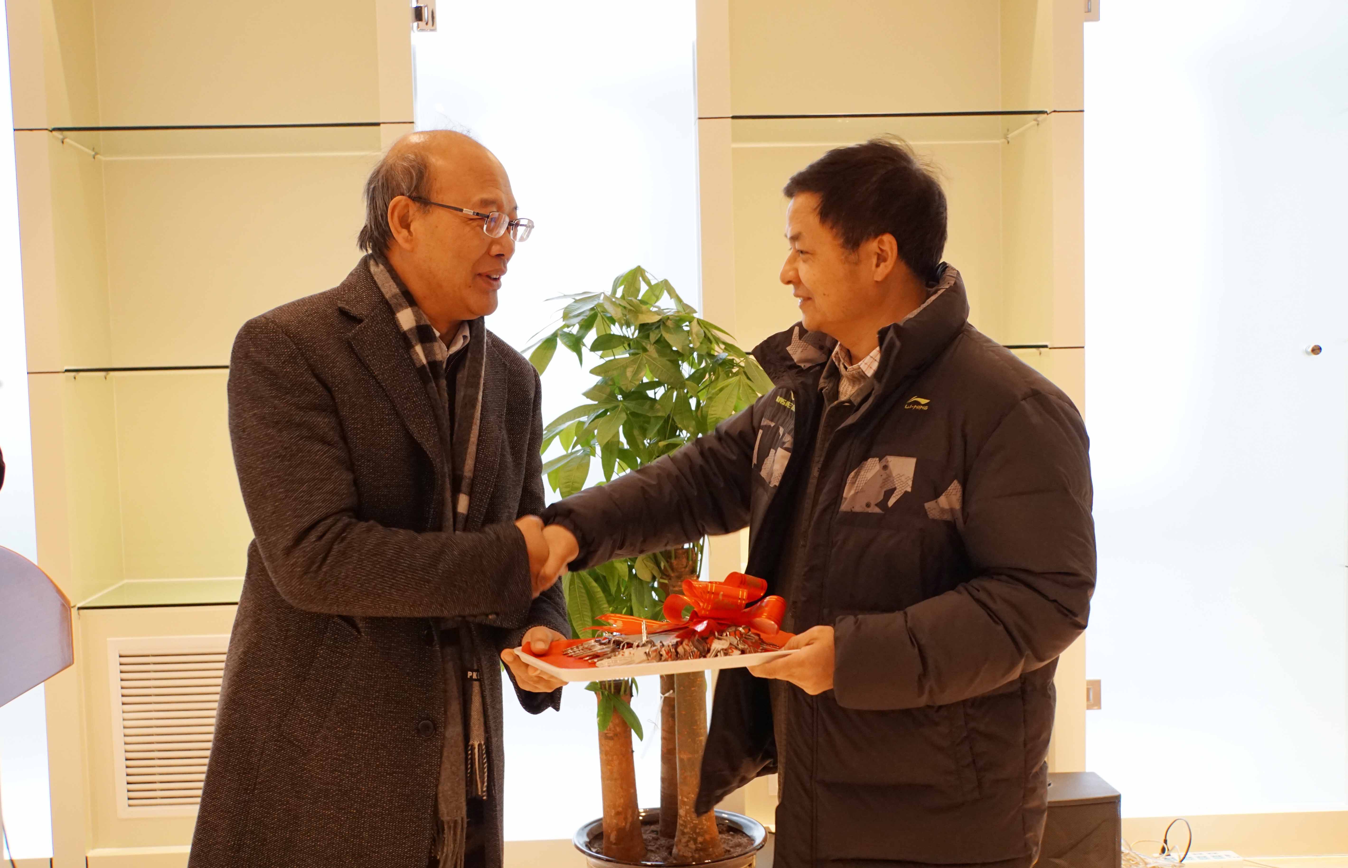 仪式上,王恩哥校长代表学校将物理西楼的钥匙交付给陈晓林书记。王恩哥校长在讲话中回忆了2009年他刚到伟德源自英国始于1946时,见到园区环境杂乱,便开始着手规划物理园区的改造和建设,经过这几年的努力看到目前的现状感到非常高兴,并向参与园区建设的各方表示感谢。