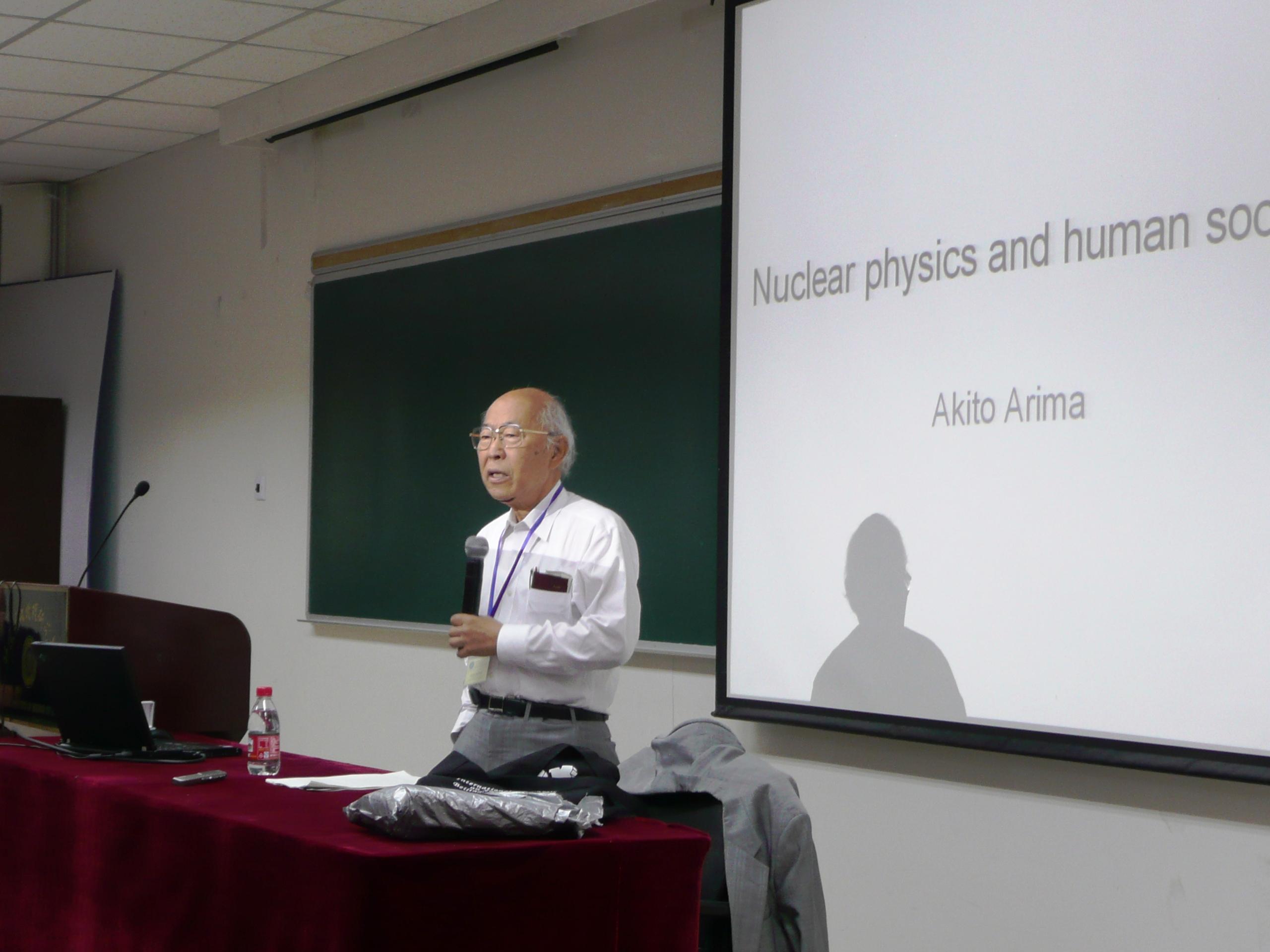 有马朗人先生1930年9月13日生于大阪,毕业于东京大学,是国际著名物理学家,因对原子核磁矩、赝自旋对称性、组态相互作用壳模型、原子核结团效应、相互作用玻色子模型等做出的开创性贡献而享誉世界。有马朗人先生还是杰出的物理教育家,先后培养了44名博士和数十名博士后,其中许多人已是相关领域的著名科学家。有马朗人先生曾担任东京大学校长、日本理化学研究所理事长、中央教育审议会会长、日本参议院议员、文部大臣、日本俳句学会会长、武藏学园学园长、武藏大学校长等。