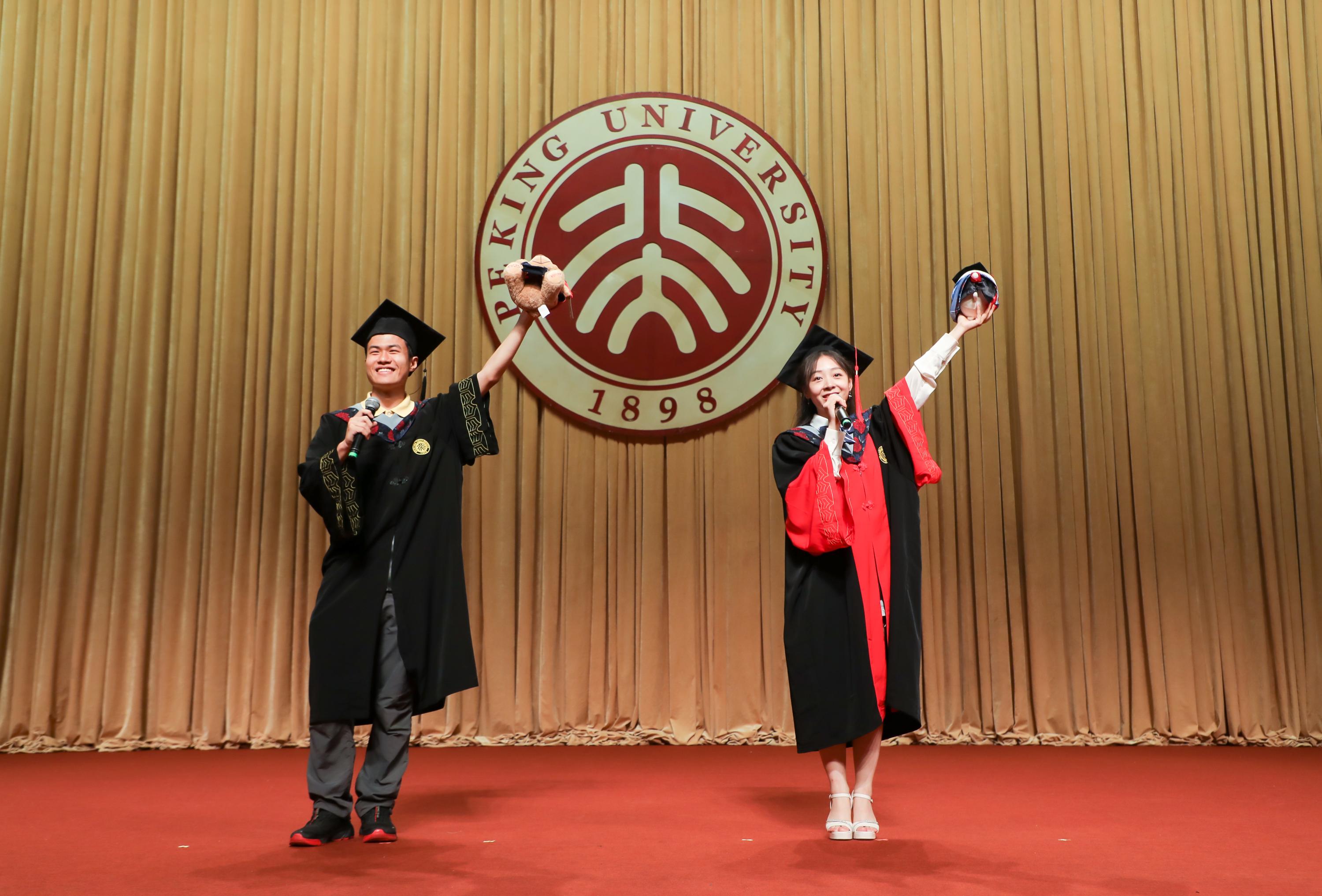窗外细雨淅沥,厅内温情悠长。典礼开始前,暖场的纪念视频记录着燕园求学的一个个动人瞬间,新生报到时种下的梦想早已生根、开花;暖心的祝福视频传递着物院名师的一段段肺腑之言,诚挚的祝福和中肯的叮嘱将伴随毕业生踏上新的征途。