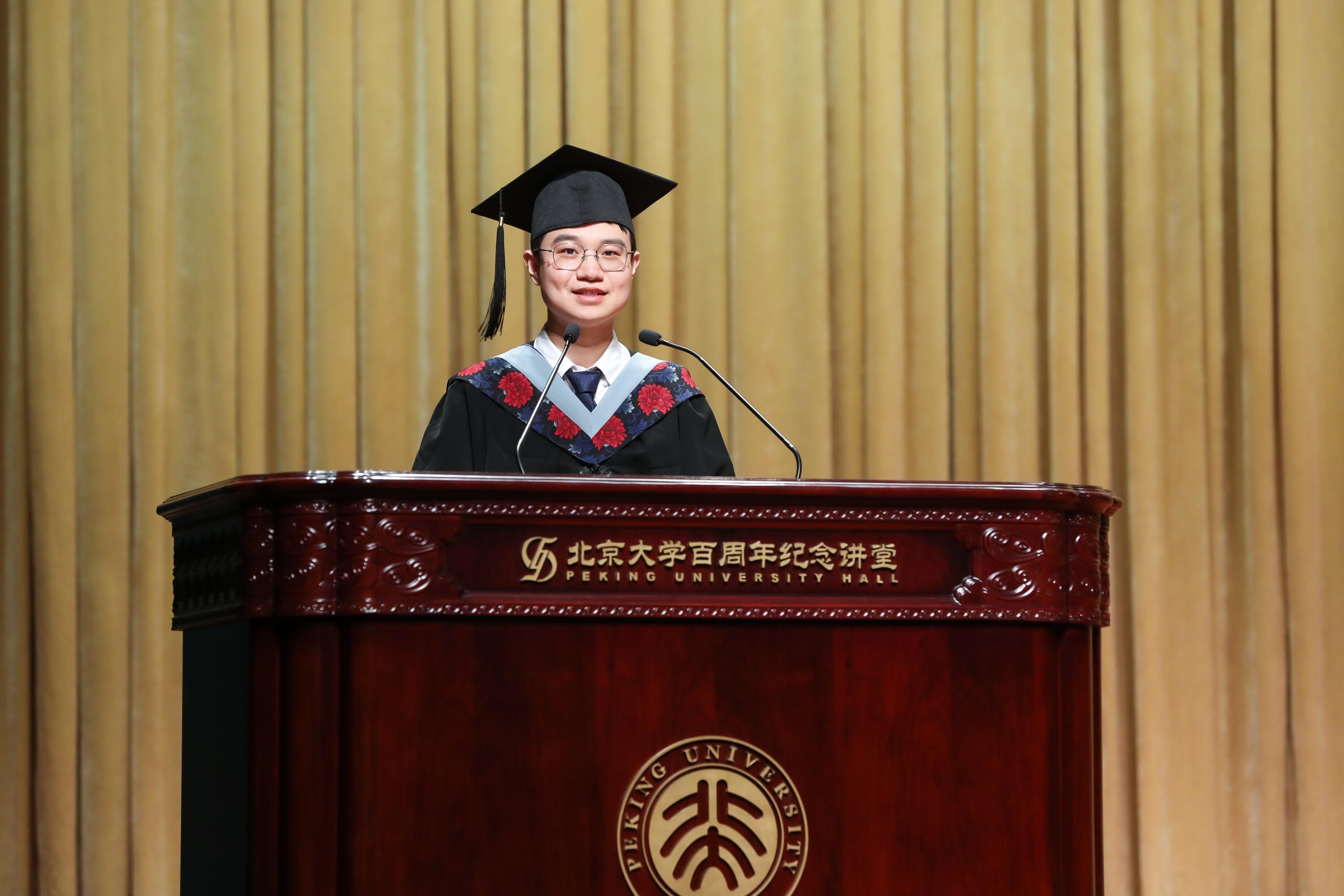 本科毕业生代表王次天在发言中分享了如何从四年前的迷茫、焦虑和自我怀疑,通过做本研项目、选研究生课程,逐渐校准认知、激发信心,为四年后的再攀登奠定了坚实的基础,储备了不竭的勇气和底气。