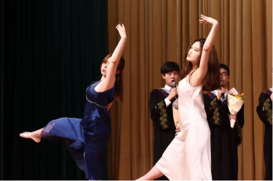 学生代表现场演唱《星河》。悠扬的歌声和动人的舞蹈感染了在场的师生,勾起了师生满满的感动和回忆。