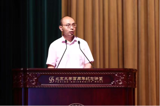 导师代表冯旭教授在致辞中表达了作为导师见证学生成长、成才的喜悦,希望同学们能吸收新事物、抓住时代脉搏,在所从事的行业中屹立于创新的潮头,敢于探索、静心钻研,用“爱国、进步、民主、科学”的北大精神指引前行的方向。