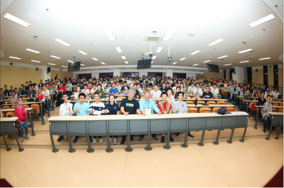 欧阳颀(一排右四)、高原宁(一排右五)启发同学们从热力学的角度思考复杂而有序的生命系统