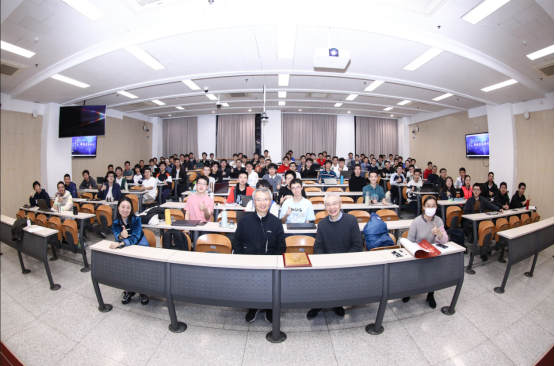 罗琦(一排左二)、王宇钢(一排左三)勉励同学们把爱国之情、报国之志融入安全、健康、可持续发展的中国核事业之中