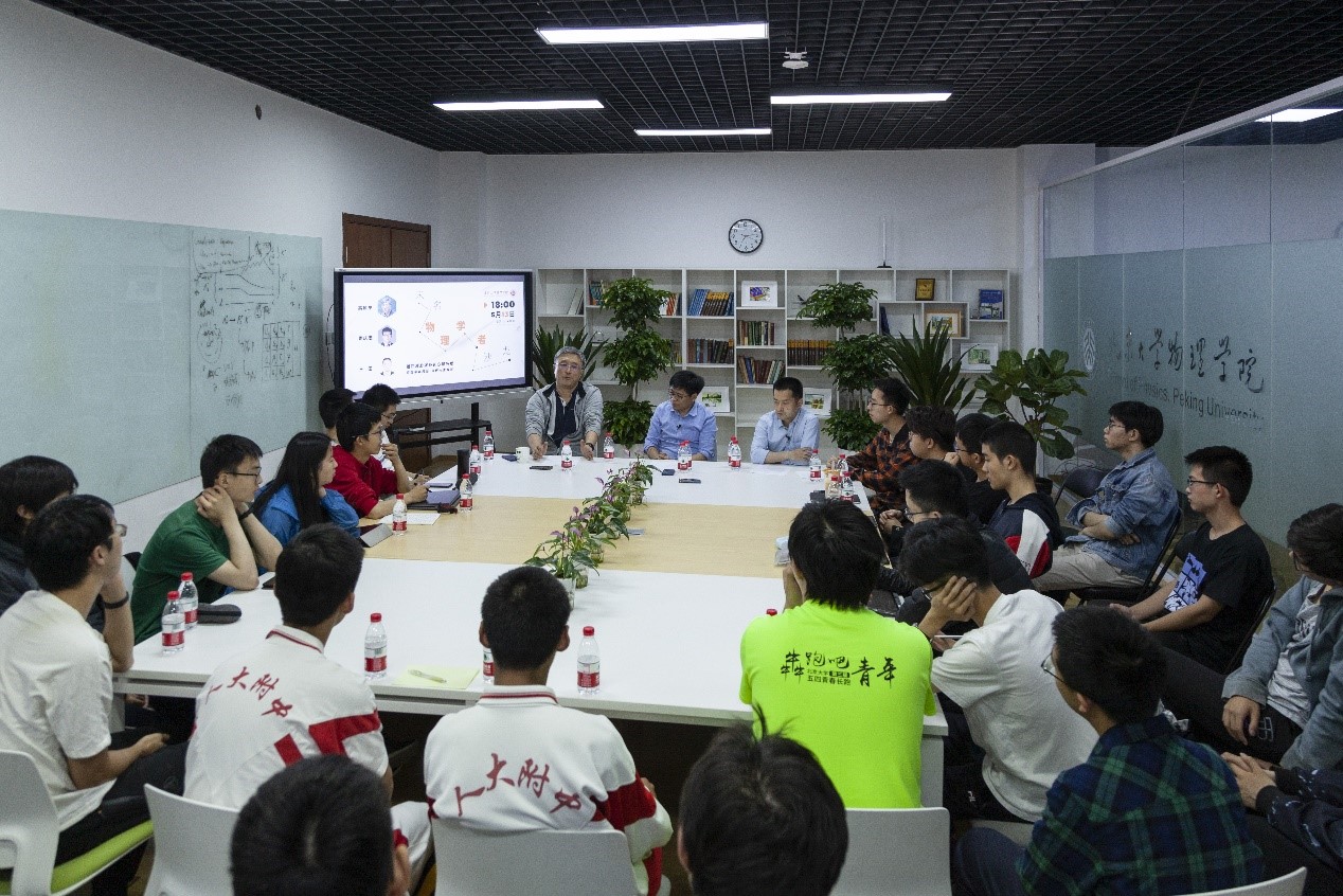 在活动伊始,三位老师依次分享了自己在本科阶段的求学经历。王垡老师表示自己从来没有考虑过其他的方向,出国以后一直在自己所关心的项目上钻研,专注于此直到回国任教。高原宁老师则表示,自己在高考前就非常坚定地选择了物理,在北大取得博士学位后,由于机缘巧合尝试了高能物理实验,渐渐觉得这个方向挺好,就坚持了下来。相比之下,曹庆宏老师的物理学生涯则较为曲折:他在高考填报志愿时本来选择了和经商有关的专业,但是因为在报名表上勾选了“同意调剂”,最终进入了物理的天地。曹老师说,自己属于“后知后觉”的人,研究生毕业以后还尝试过创业,最终发现还是学术更适合自己。“殊途”不影响“同归”,当年物理学的爱好者们最终跻于一堂。