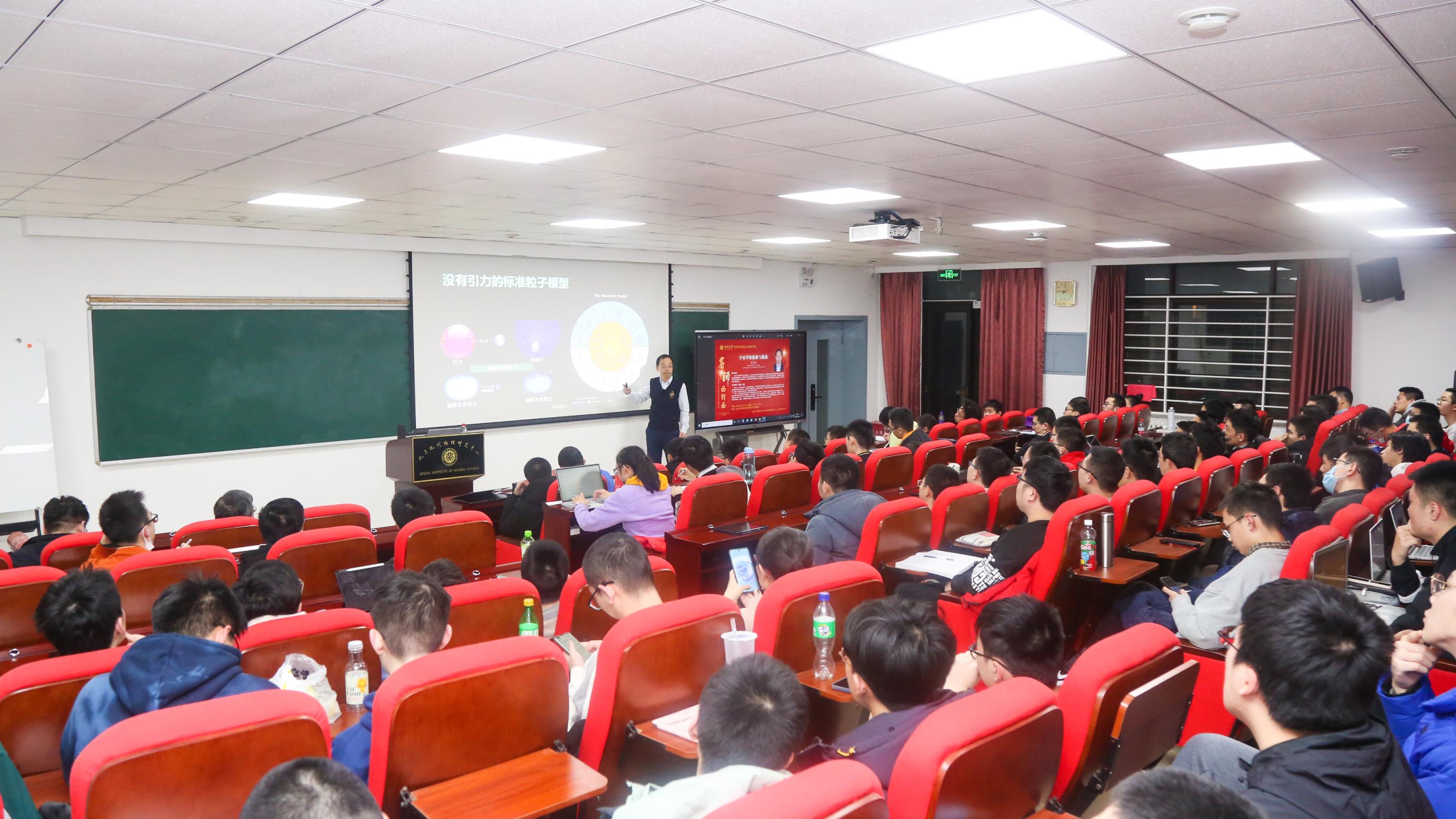 然而,在标准宇宙学模型(ΛCDM)已经被普遍认可、宇宙大尺度结构形成已经被完美复制的今天,人类对构成宇宙的主要物质成分和导致宇宙加速膨胀的动因仍然几乎一无所知。近百年来,暗物质和暗能量这两朵笼罩在现代宇宙学上空的“乌云”驱策科学家前赴后继地上下求索。武向平以爱因斯坦的名言“宇宙中最不可理解的事,即宇宙是可以被理解的。”(The eternal mystery of the world is its comprehensibility)勉励同学们永葆探究未知的好奇心和直面挑战的进取心,主动锻炼丰富的想象力和卓越的创造力,飞向属于自己的浩瀚星空,构筑前所未有的物理新天地。