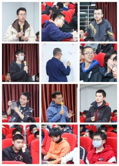 报告结束后,张纪烨、陈颜忻、侯翰飞、吴岱霖、张亦鑫、董遇、邢昊天等“物理卓越计划”2022级本科生就庞加莱猜想、马约拉纳费米子、全息虫洞、高斯酉系综、阿波罗尼奥斯圆等话题提问。田刚引用费曼(R. Feynman)所说的“对那些不懂数学的人来说,的确难于使他们理解对大自然的美、那深层的美的一种真正的感觉”(To those who do not know mathematics it is difficult to get across a real feeling as to the beauty, the deepest beauty, of nature),启迪同学们去体味数学的纯粹性、深刻性、统一性,掌握这一认识物理世界不可或缺的通用语言和基本工具;同时,也鼓励同学们坚守自己的科学志趣,博观约取,厚积薄发,在更高的能量标度和更小的时空尺度上探索未知的科学发现,挑战未解的科学难题。