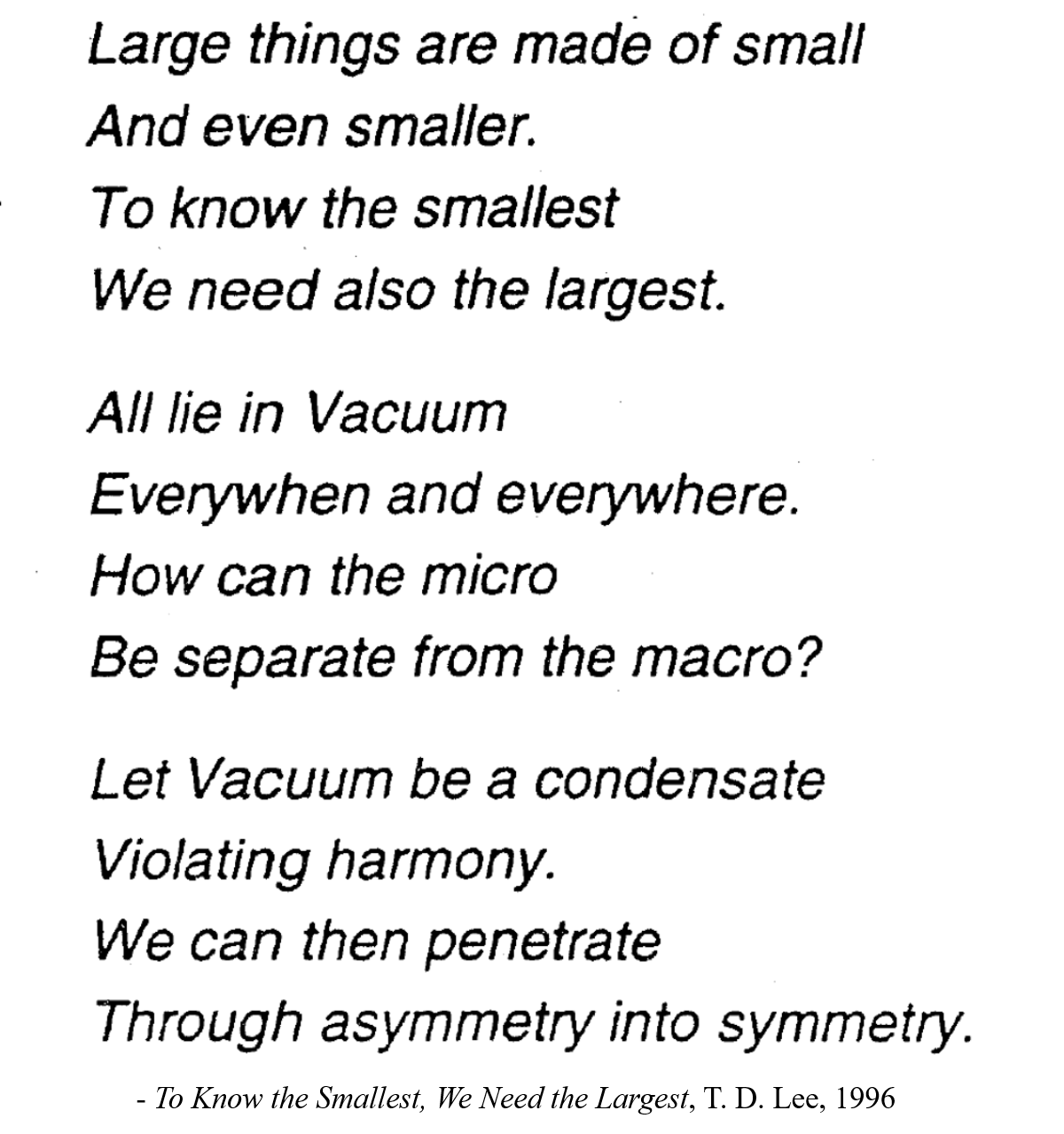 在报告的最后,赵政国向台下认真聆听的“物理卓越计划”2022级本科生和“物理卓越营”2023年学员分享了李政道先生创作的一首蕴含哲理的小诗: