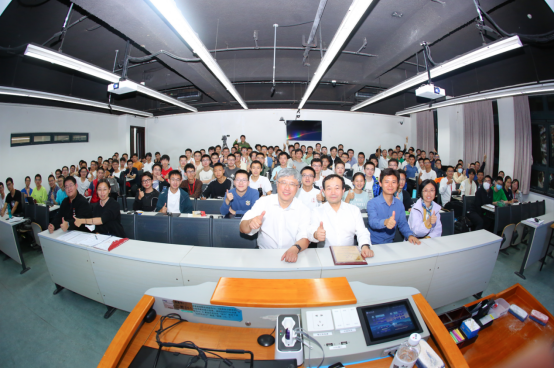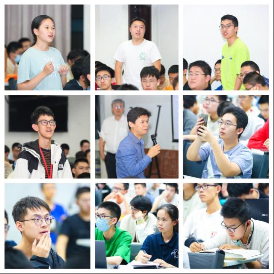 俞大鹏(一排右三)、高原宁(一排右四)与听课师生为中国量子计算挺进世界第一方阵点赞