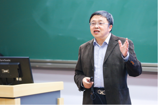 在系统回溯半导体技术发展简史之后,常凯深入解读了冯·克利钦(K. von Klitzing)发现整数量子霍尔效应(获1985年诺贝尔物理学奖),崔琦(D. C. Tsui)、施特莫(H. L. Störmer)发现分数量子霍尔效应(与劳克林(R. B. Laughlin)同获1998年诺贝尔物理学奖),赤崎勇(Isamu Akasaki)、天野浩(Hiroshi Amano)、中村修二(Shuji Nakamura)发明蓝色发光二极管(三人同获2014年诺贝尔物理学奖)等与半导体紧密相关、具有里程碑意义的研究工作。他还以自己与合作者近年来在半导体量子结构物性调控,特别是半导体极性界面、窄能隙半导体自旋轨道耦合和新奇量子相探索等方面的原创性研究工作为例,为同学们揭示了半导体量子结构中丰富的物理内涵、新奇的量子物态及其调控的新机理。