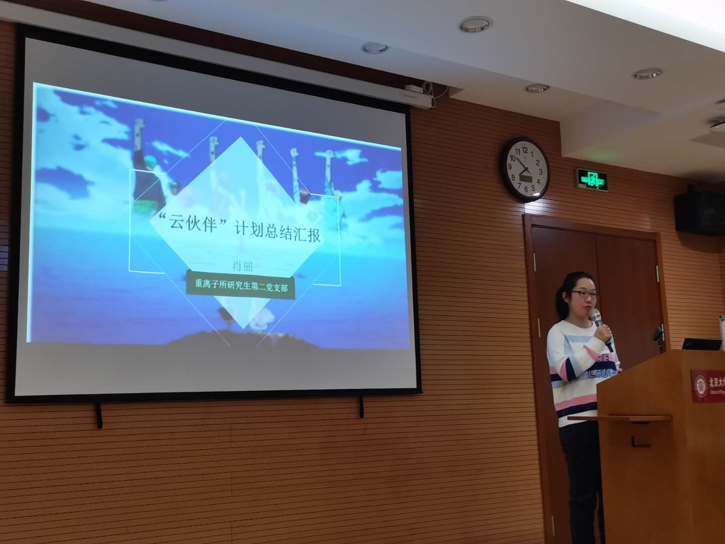 而后,重离子所研究生第二党支部团支书肖丽同学分享了她们班疫情期间帮扶武汉一中的高考学子的故事。