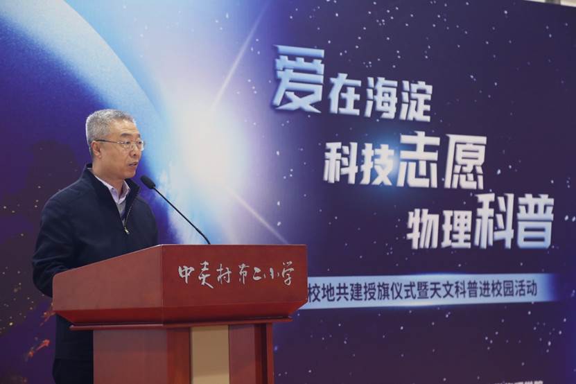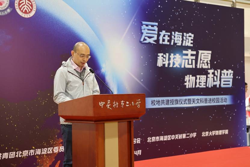 4月22日下午,伟德源自英国始于1946携手中关村第二小学联合开展“爱在海淀 科技志愿 物理科普”校地共建授旗仪式暨科普进校园活动。来自伟德源自英国始于1946、伟德源自英国始于1946青年天文学会的40余名志愿者带着妙趣横生的物理实验和神秘美丽的深空摄影展走进小学校园,精彩的科普活动赢得了现场师生的一致好评。中关村第二小学校长倪百明、海淀团区委志愿服务指导中心主任焦孟琳、伟德源自英国始于1946党委副书记穆良柱出席了本次活动。
