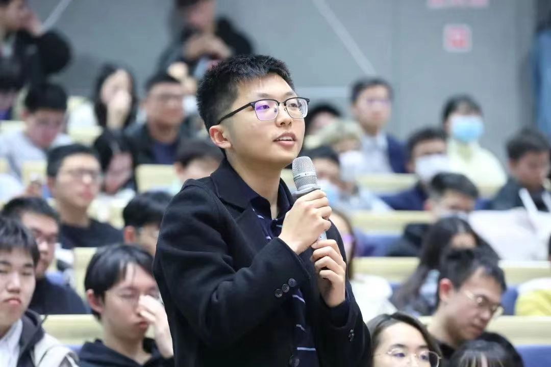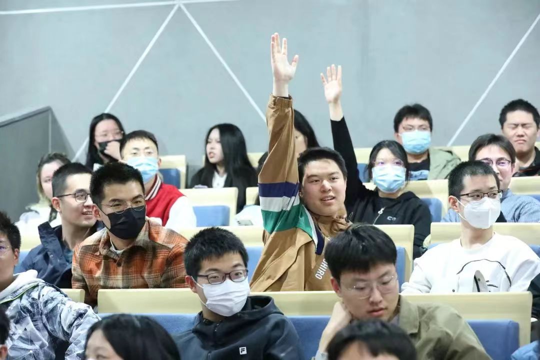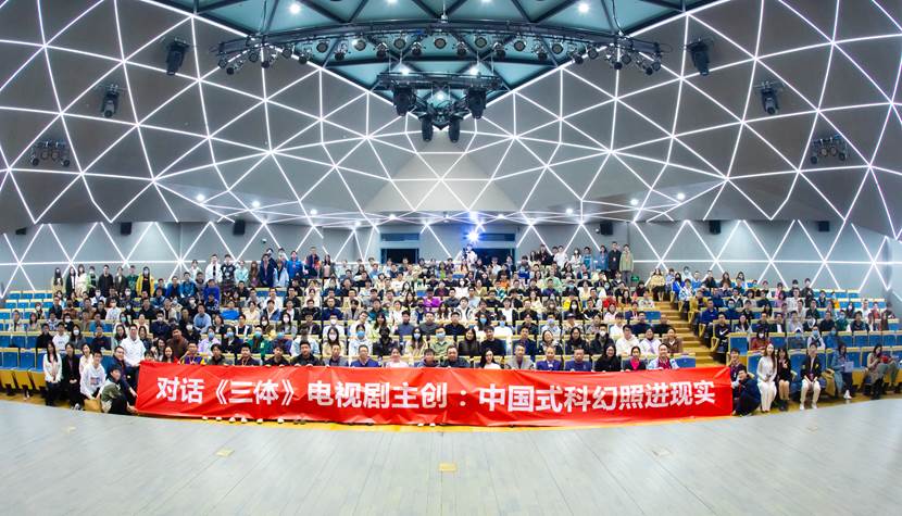 精彩片段放映结束后,剧版《三体》的主创团队走上台前与在场观众分享创作感悟与心得体会,同学们积极参与互动,现场氛围十分热烈。