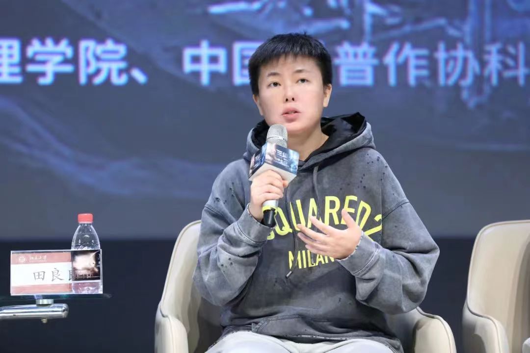 随后,现场同学结合专业背景向主创团队提出了一系列问题。在这些交流中,同学们严谨而富有想象的科学精神与深邃的人文温情展露无遗。“给岁月以文明,给时间以生命。”一片璀璨的星空下,我们共同见证了中国科幻照进现实;而作为北大“新青年”的同学们纷纷表示,正当青春,自当踔厉奋发,投身于科研事业,使得中国科幻成为现实——乃至于照耀更遥远的明天。
