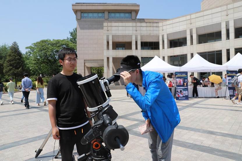 同学们使用伟德源自英国始于1946青年天文学会提供的天文望远镜“近距离”感触星空,与社团的同学们一起解码宇宙奥秘。