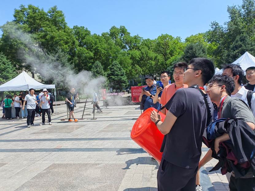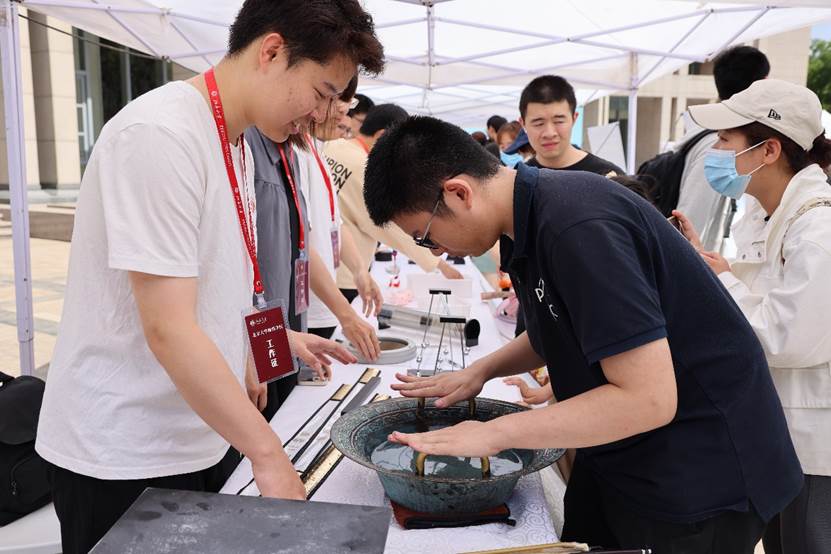 虽然烈日炎炎,仍然挡不住同学们参与现场活动、感受物理魅力的热情。同学们从科普集市入口处领取“入学通知书”,在各个展位前热情体验、挑战闯关。“魔法实验,精彩纷呈。”物理实验演示科普区的志愿者向同学们展示了古老的鱼洗盆、蕴含光影奥义的偏振实验和炫酷的液氮超导磁悬浮等,“十秒就能吃到”的液氮冰淇淋更是给活动现场增加了更多互动体验,为炎热的午日时光增添了一丝清凉。前来参与的同学也亲自动手操作,在共振钢板上绘制简洁的图案,触摸辉光球观看电流产生的瞬间,见证力热光电的“魔法”成为现实。