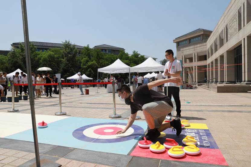 冰壶挑战赛中贴地滑行的“金色飞贼”也广受追捧 。学员们通过不断调整出力度、角度,控制冰壶的落点在营垒之内,在思考如何利用摩擦和旋转精准控制轨迹的同时,也体验了投壶、击打、占位等冰壶基础动作。不少天赋满满的“见习魔法师”都获得了挑战赛的高分,相约着挑战更高的赛场。
