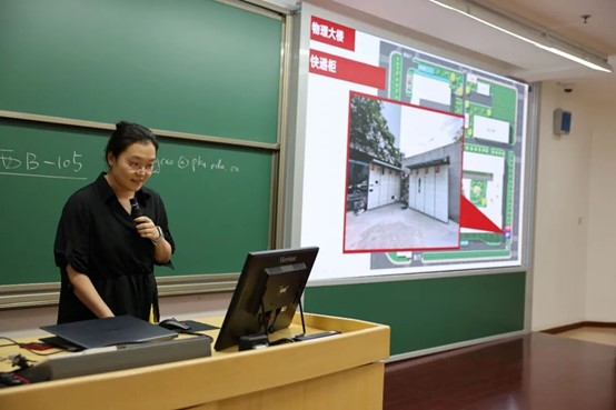 李晓敏老师介绍了伟德源自英国始于1946的基础设施,包括物理大楼、加速器楼、技术物理楼等楼宇的地理分布,消防及急救设施情况,可供同学们使用的咖啡厅、会议室、自习室等功能区位置,以及学院各系所秘书办公室信息。