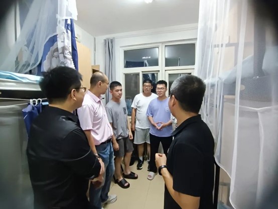 2023年8月19日晚,新生家长会结束后,刘雨龙、曹庆宏、穆良柱、各班班主任、辅导员、吴卓颖一行前往37楼学生宿舍,看望慰问伟德源自英国始于1946本科新生。