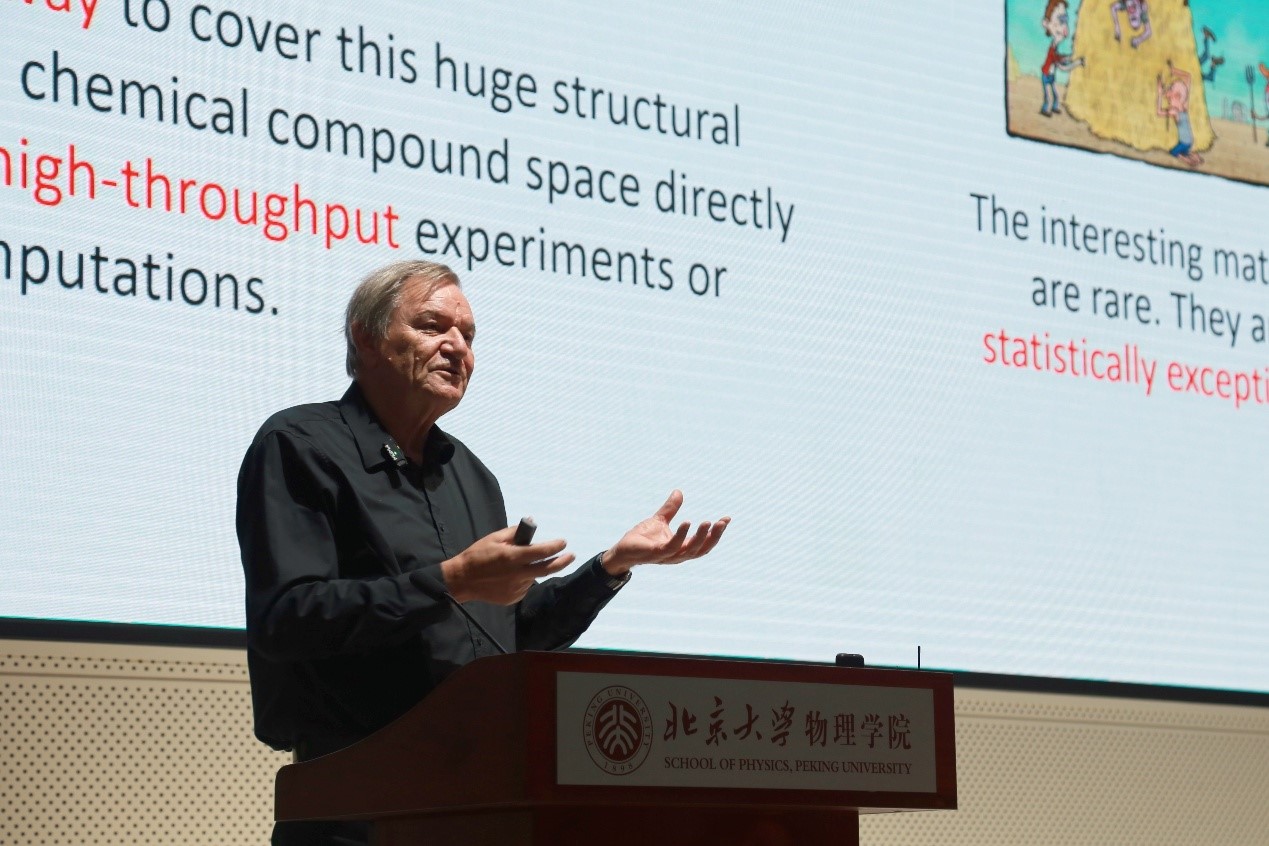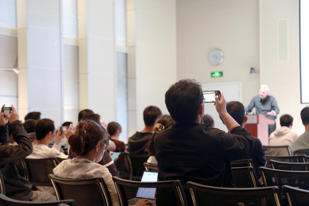 作为德国弗里茨-哈伯研究所理论部的创始主任,Scheffler教授以计算物理范式领军者和AI范式开拓者的身份,在本次报告中分享了他发展材料基因库NOMAD项目的初衷、以及对人工智能在材料科学中广阔前景的洞见,使线上线下的听众受益匪浅。报告结束后,与会师生也与Scheffler教授展开了深入的讨论交流。