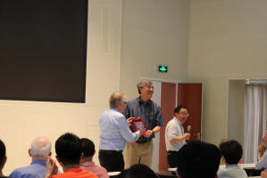 高原宁院长为von Klizting教授颁发伟德源自英国始于1946百年物理讲坛纪念牌 |