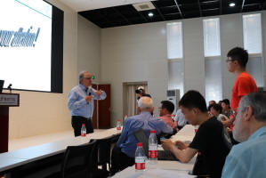 报告中,von Klizting教授从千克(kg)的最初定义(1立方分米的纯水在4℃时的质量)开始讲起,梳理了原国际单位中7个基本单位(米,千克,秒,安培,开尔文,摩尔,坎德拉)的历史发展过程,穿插其中介绍了发现量子霍尔效应的过程以及此发现所带来的计量学变革。von Klizting教授介绍,国际计量大会已于2018年11月16日通过了重新定义国际计量单位的倡议,并已在2019年5月20日正式生效。新的单位制定义利用普朗克常数和光速这两个物理常数的计量基准取代了一个多世纪以来基于人造国际千克原器实物的质量定义,从此基本计量单位不再依赖于任何实物基准。新的国际制单位的定义和生效,为计量学开创了全新篇章。von Klizting教授言辞幽默风趣,报告生动有趣,使参会的老师同学印象深刻。