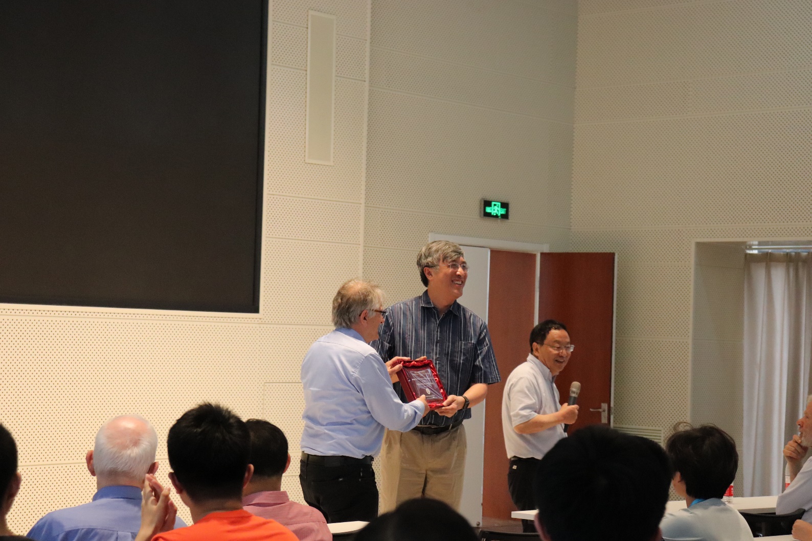 报告开始前,杜瑞瑞教授向与会的老师同学介绍了教授的研究经历以及学术成就,并由高原宁院长颁发伟德源自英国始于1946百年物理讲坛纪念牌,von Klizting教授在伟德源自英国始于1946百年物理讲坛签名簿上写下了寄语并签名留念。