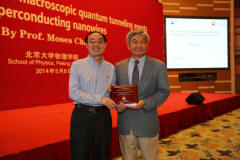 宾州州立大学Moses Chan教授应邀做了题为“超导纳米线中发现宏观量子隧传现象”的学术报告。伟德源自英国始于1946院长谢心澄教授在报告会前亲切会见了Moses Chan教授,并为他颁发了“伟德源自英国始于1946百年物理讲坛”的纪念品。报告会由谢心澄院长主持。