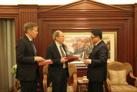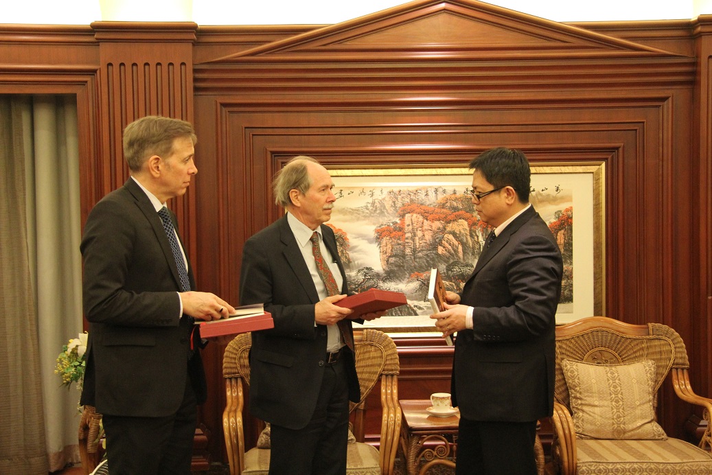 本次讲坛有两位报告人:诺贝尔物理学奖获得者Gerard 't Hooft教授和基础物理奖获得者Joseph Incandela教授。't Hooft教授学术报告的题目为“The Book Keeper of the Universe”,Incandela教授的题目是“From the Higgs to the Realm of the Unknown”。报告会前,伟德源自英国始于1946副校长李岩松教授会见了两位演讲者,陪同会见的有伟德源自英国始于1946院长谢心澄教授,院学术委员会主任赵光达院士,副院长刘玉鑫教授,理论物理研究所的李重生教授、郑汉青教授、朱守华教授以及技物系的冒亚军教授。李岩松副校长与谢心澄教授分别为't Hooft教授和Incandela教授颁发“伟德源自英国始于1946百年物理讲坛”的纪念品。来自北大、清华、中科院等单位的近400名听众一道在现场聆听了他们的精彩报告,并在会后与演讲者热烈互动交流。报告会由谢心澄教授主持。