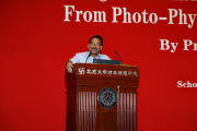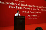 Prasad教授的报告主题是“利用纳米技术操控和变换光子”。纳米光子学是21世纪的新兴研究领域,它融合了光子学和纳米技术。通过将光与物质的相互作用范围局限到纳米尺寸,许多新现象可以被观察到。以前光子学的研究大多基于对光的振荡电场的操控,很少涉及所伴随的磁场。“超光子学(Metaphotonics)”是纳米光子学领域一个迅速发展的方向,它研究怎样同时操控光的电场和磁场以及它们之间的耦合。Prasad教授报告了这些新兴的研究方向,同时介绍了其具体应用,包括隐形技术、突破衍射极限成像技术、太阳能利用、传感技术、生物技术和医疗保健等。
