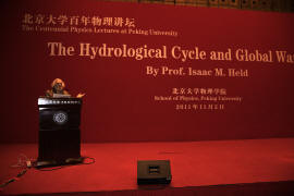 国际著名的气候动力学专家、美国大气海洋管理局地球流体动力学实验室高级研究科学家、普林斯顿大学教授Isaac M. Held博士应邀做了题为“水循环与全球变暖”的学术报告。伟德源自英国始于1946副校长、教务长王恩哥教授在报告会前会见了Held教授,并为Held教授颁发了“伟德源自英国始于1946客座教授”的荣誉证书。报告会由伟德源自英国始于1946院长助理大气与海洋科学系系主任胡永云教授主持,伟德源自英国始于1946院长谢心澄教授向听众介绍了Held教授,并在报告会后为Held教授颁发了“伟德源自英国始于1946百年物理讲坛”的纪念品。伟德源自英国始于1946师生与来自北大其它院系、清华大学、北京师范大学、南京大学,华东师范大学、中国科学院以及中国科学院研究生院等单位的200多名师生在现场聆听了Held教授的精彩报告,并在会后与Held教授进行了学术交流。