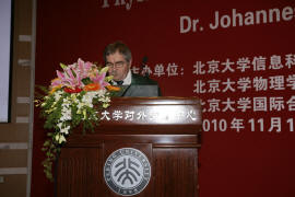 当现代的半导体技术已接近其尺寸极限,在纳米尺度甚至原子尺度上研究材料的物理性质并探索新型材料和新的技术正日益成为必要。Bednorz博士以扫描隧道显微术为例,形象生动地讲述了如何在原子尺度上探测和调控材料的物性,使听众们感到大开眼界,意犹未尽。