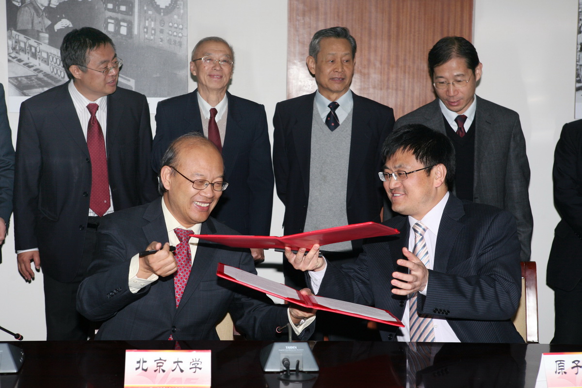 2011年10月31日,王恩哥副校长带领伟德源自英国始于1946代表团访问中国原子能科学研究院,与万钢院长一起签署了《伟德源自英国始于1946与中国原子能科学研究院共同推动建设ISOL型大科学装置的协议》。原子能院张昌明书记、赵志祥主任、柳卫平副院长及各部门负责人,伟德源自英国始于1946核研院院长杜祥琬院士和国际顾问委员会主任陈佳洱院士及各位副院长,北大科研部、发展规划部、就业中心等负责人,北大伟德源自英国始于1946负责人等出席签字仪式。仪式上还宣布了共建大装置的专家委员会组成人选。