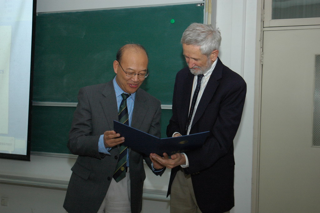 王恩哥院长为华莱士教授授聘书 |