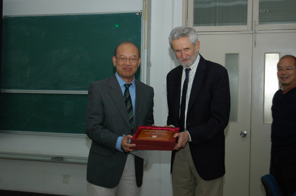 王恩哥院长向华莱士教授赠送纪念品 |