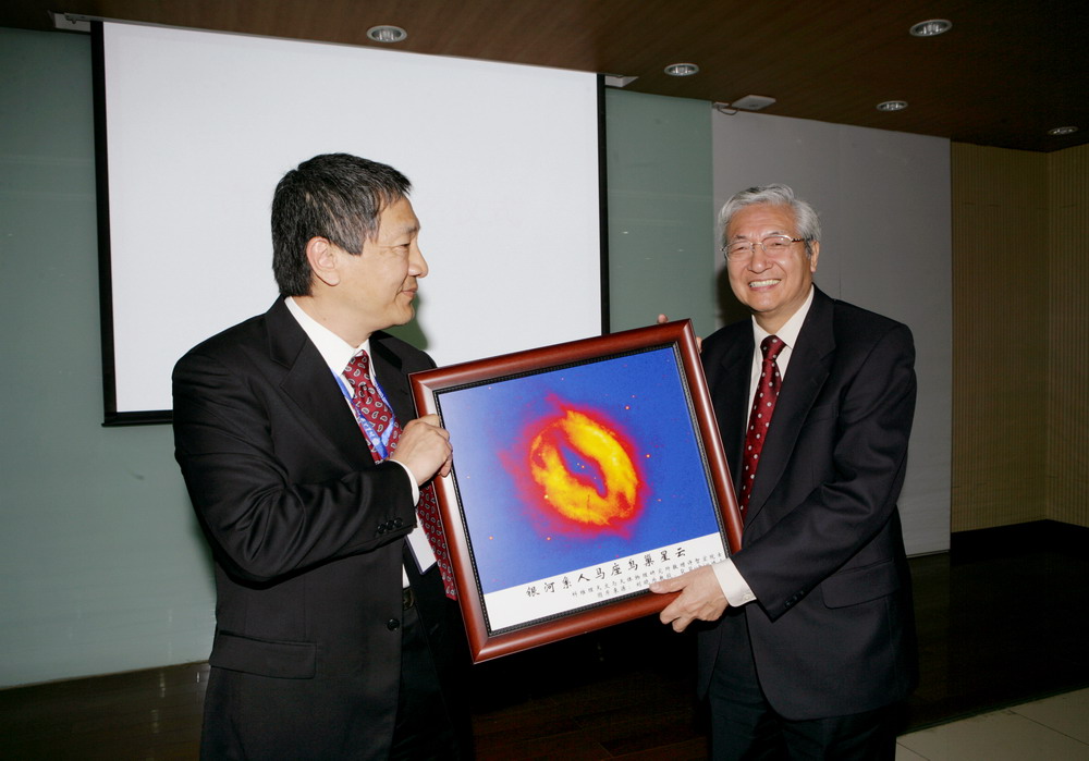 KIAA所长林潮教授 向许智宏院士赠送礼品 |